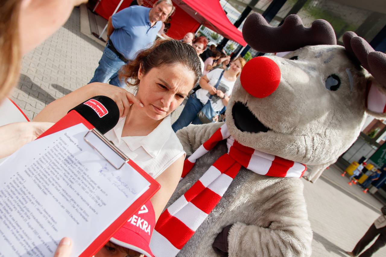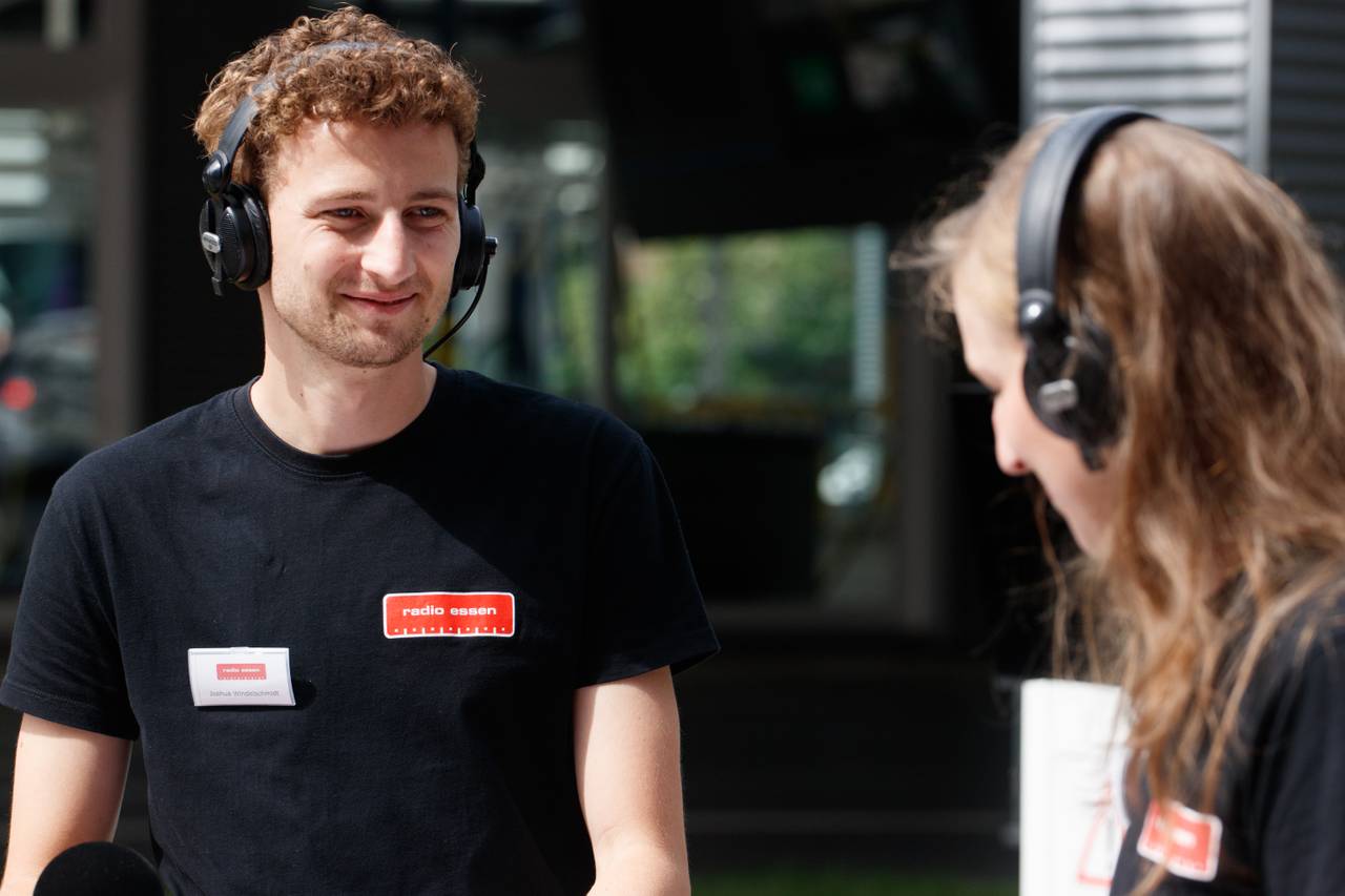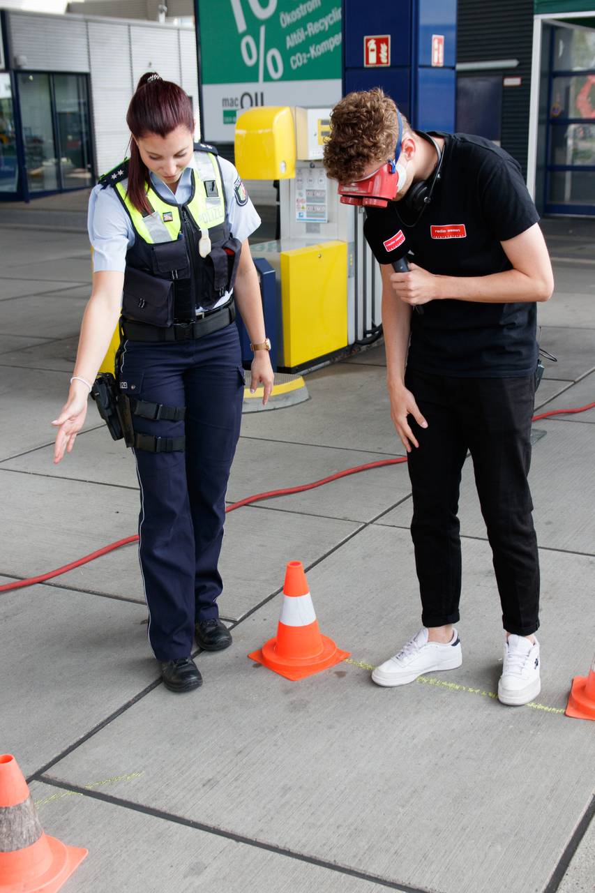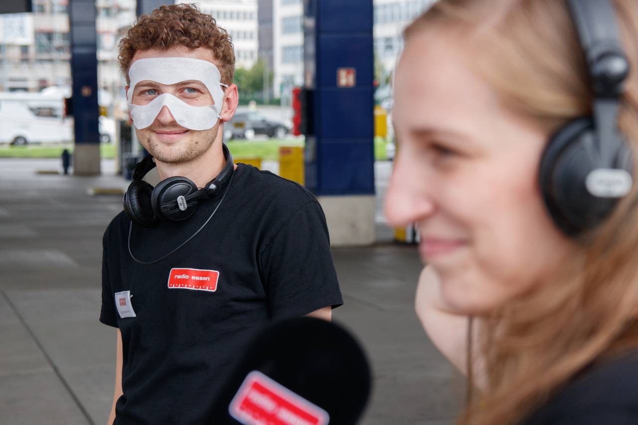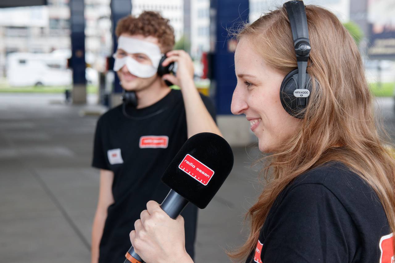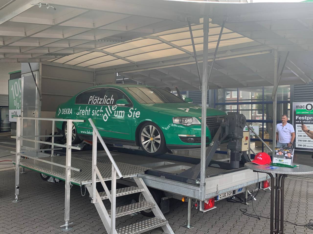 Neben der kostenlosen Autowäsche gab es auch Action beim Radio Essen-Verkehrsmeldertag. Mit der Unterstützung der DEKRA haben wir Euch testen lassen, wie es sich anfühlt, wenn ein Auto sich überschlägt. In einem Überschlagsimulator konnten sich unsere Verkehrsmelderinnen und Verkehrsmelder auf den Kopf drehen lassen. Michael aus dem Westviertel findet, dass der Simulator eine gute Abschreckung ist. Seine Kinder finden es besser als Achterbahn fahren. Außerdem hat die Polizei Essen einen Parcours aufgebaut. Der sah zwar einfach aus, musste aber mit einer bestimmten Brille durchlaufen werden. Die simuliert, wie es sich anfühlt, wenn man Alkohol getrunken hat.