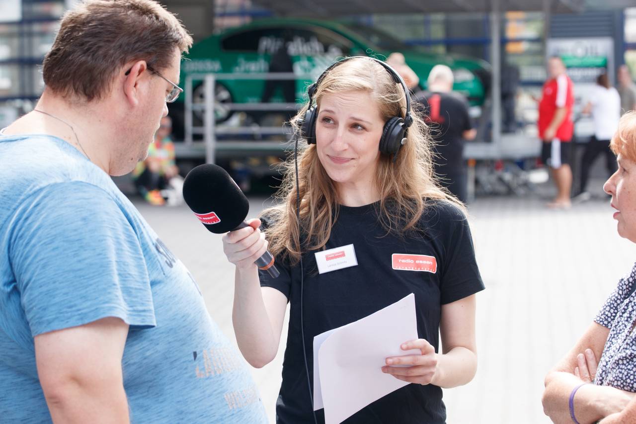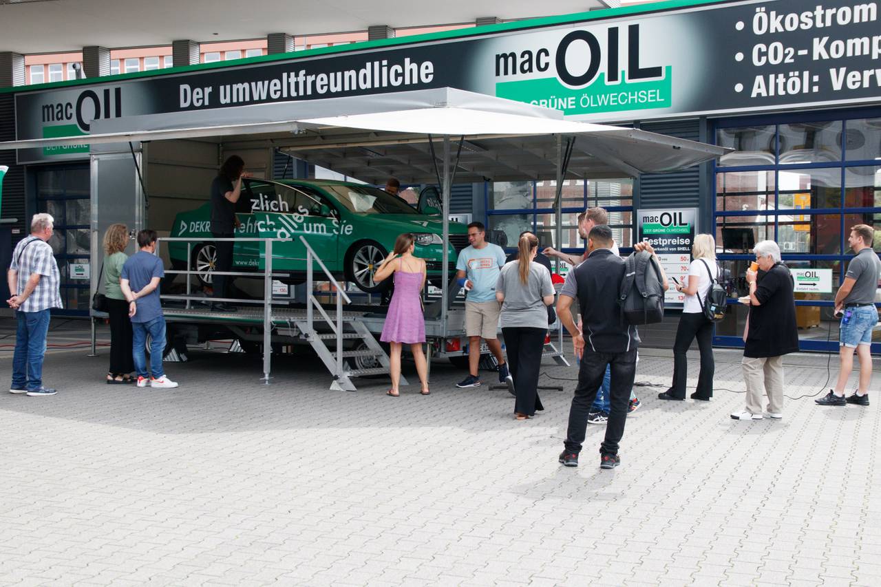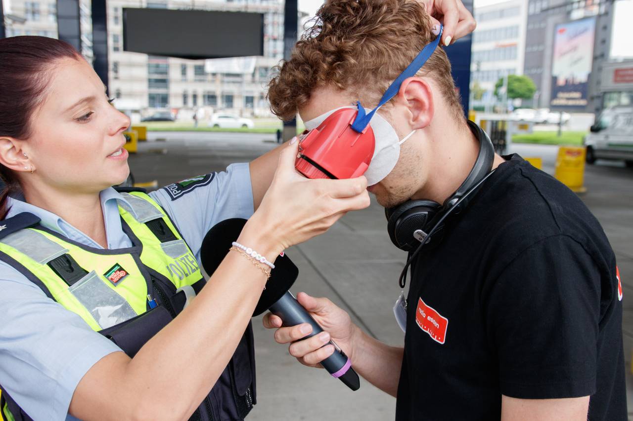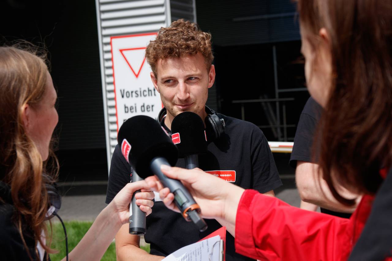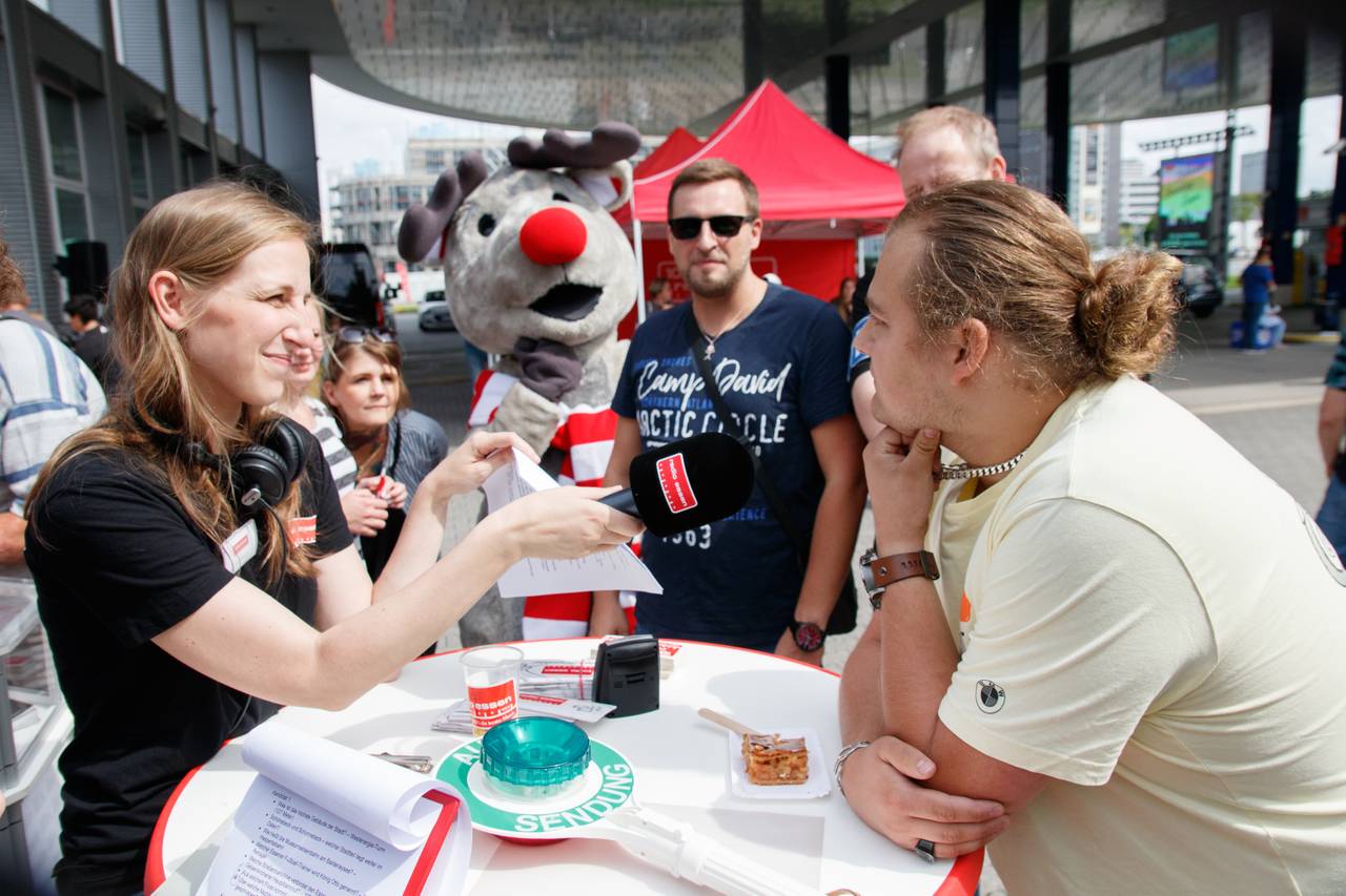 Neben der kostenlosen Autowäsche gab es auch Action beim Radio Essen-Verkehrsmeldertag. Mit der Unterstützung der DEKRA haben wir Euch testen lassen, wie es sich anfühlt, wenn ein Auto sich überschlägt. In einem Überschlagsimulator konnten sich unsere Verkehrsmelderinnen und Verkehrsmelder auf den Kopf drehen lassen. Michael aus dem Westviertel findet, dass der Simulator eine gute Abschreckung ist. Seine Kinder finden es besser als Achterbahn fahren. Außerdem hat die Polizei Essen einen Parcours aufgebaut. Der sah zwar einfach aus, musste aber mit einer bestimmten Brille durchlaufen werden. Die simuliert, wie es sich anfühlt, wenn man Alkohol getrunken hat.