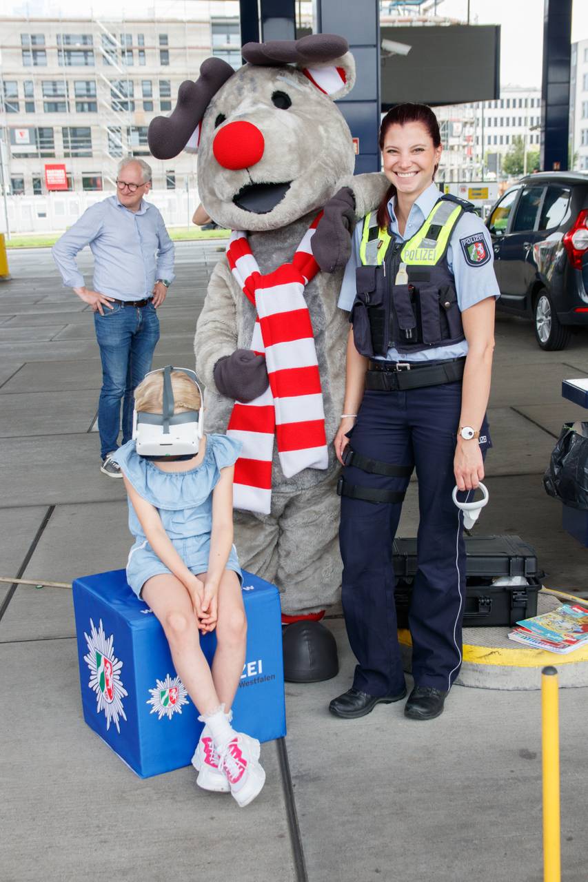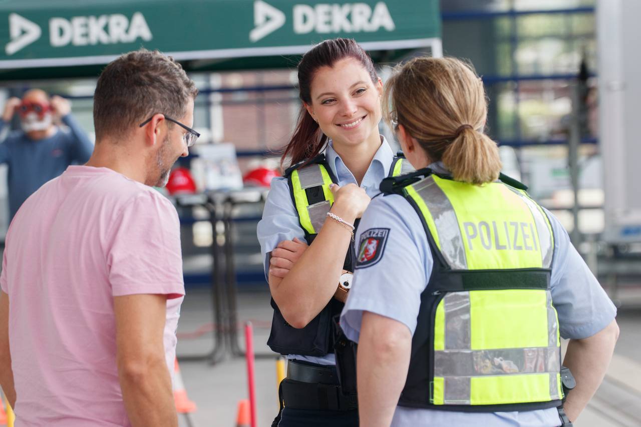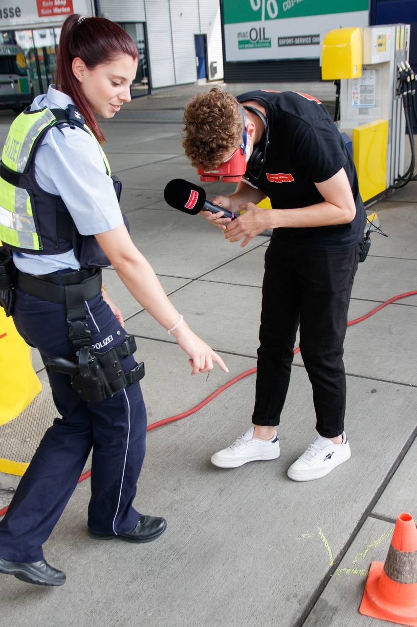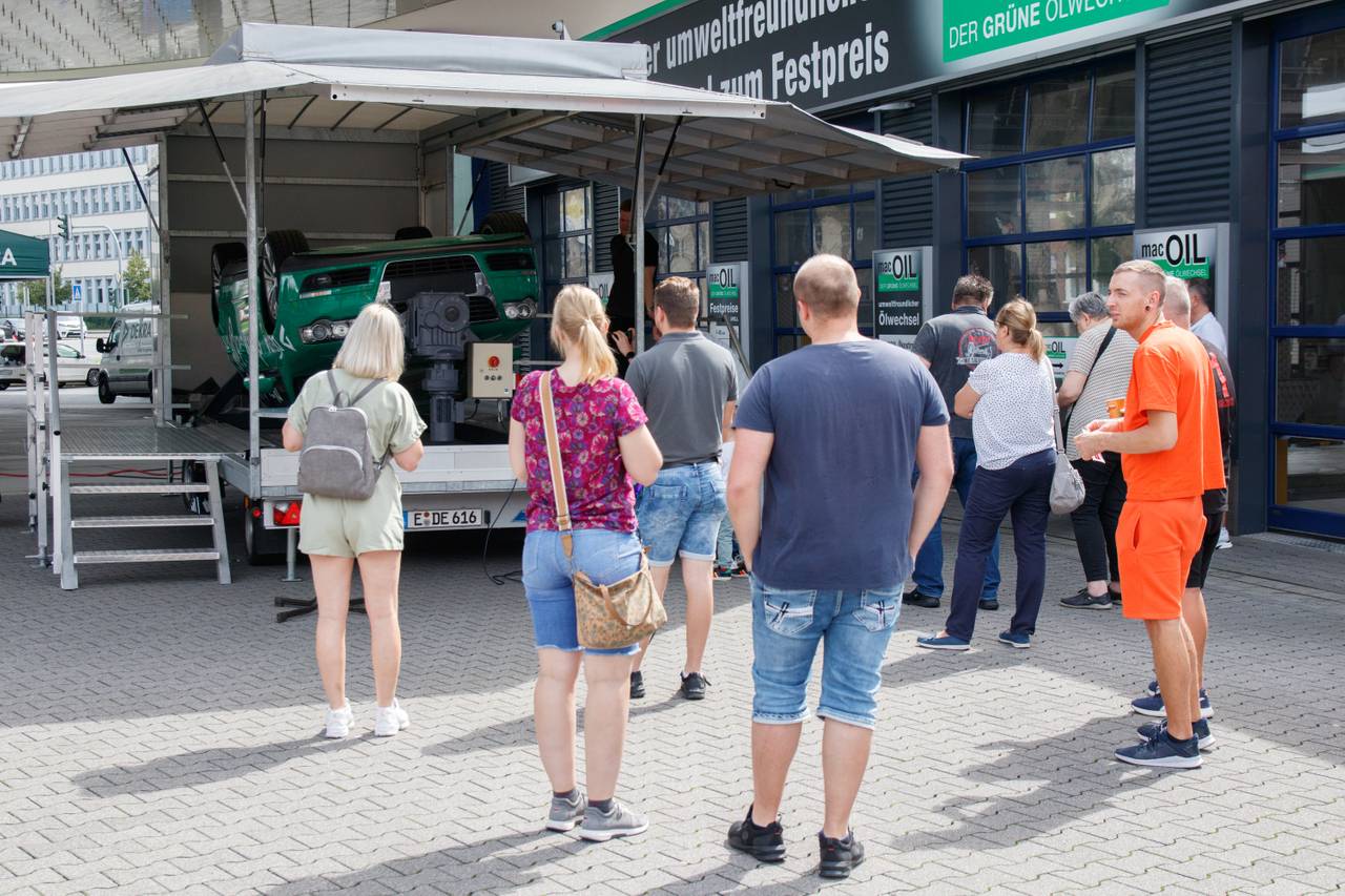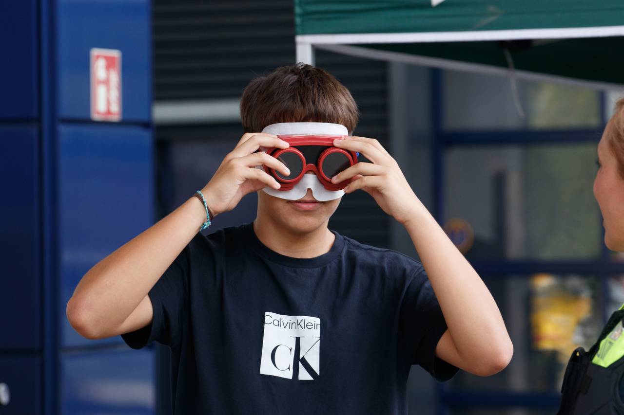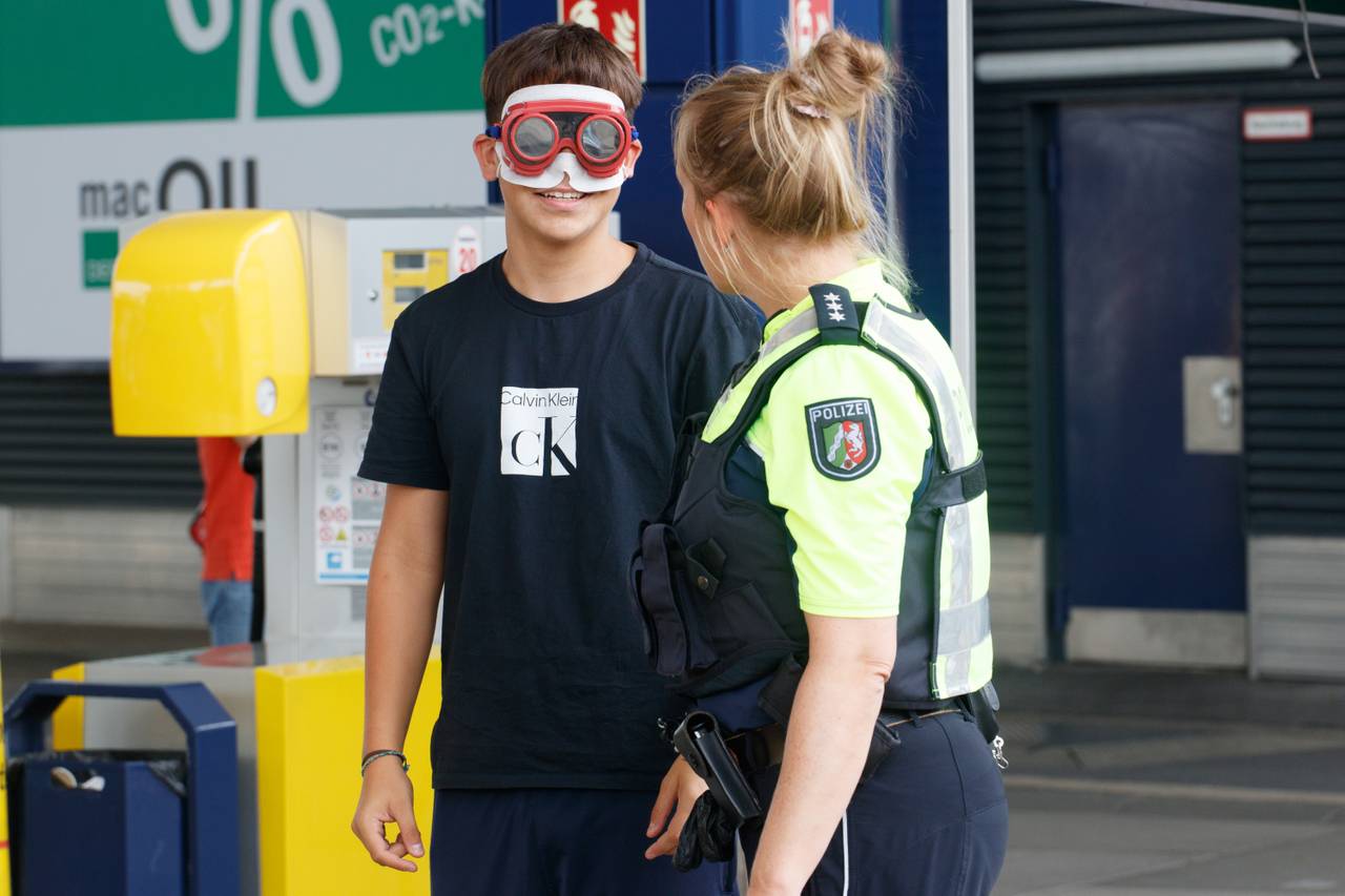 Neben der kostenlosen Autowäsche gab es auch Action beim Radio Essen-Verkehrsmeldertag. Mit der Unterstützung der DEKRA haben wir Euch testen lassen, wie es sich anfühlt, wenn ein Auto sich überschlägt. In einem Überschlagsimulator konnten sich unsere Verkehrsmelderinnen und Verkehrsmelder auf den Kopf drehen lassen. Michael aus dem Westviertel findet, dass der Simulator eine gute Abschreckung ist. Seine Kinder finden es besser als Achterbahn fahren. Außerdem hat die Polizei Essen einen Parcours aufgebaut. Der sah zwar einfach aus, musste aber mit einer bestimmten Brille durchlaufen werden. Die simuliert, wie es sich anfühlt, wenn man Alkohol getrunken hat.