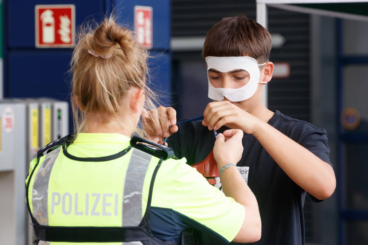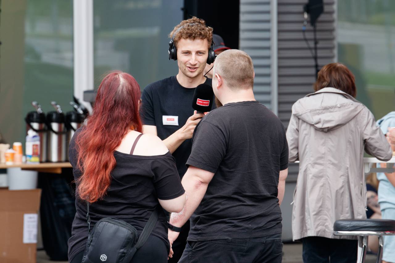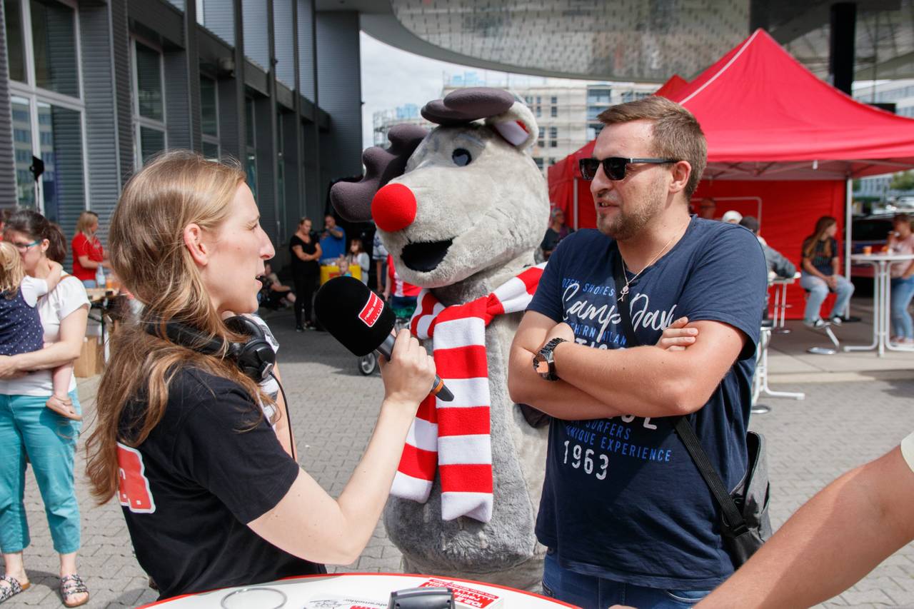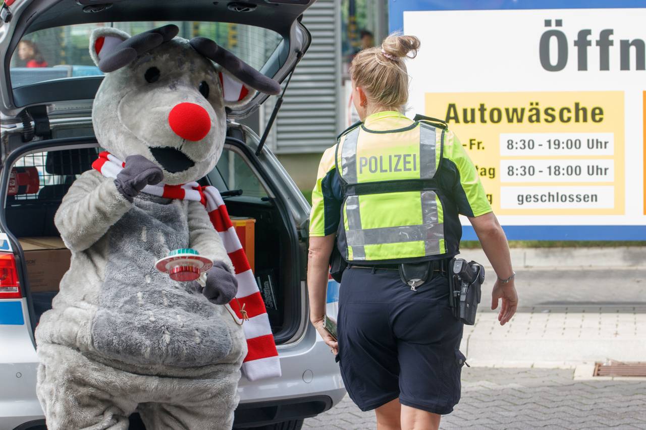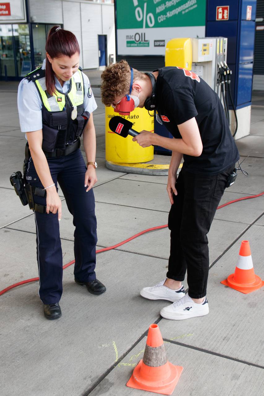 Neben der kostenlosen Autowäsche gab es auch Action beim Radio Essen-Verkehrsmeldertag. Mit der Unterstützung der DEKRA haben wir Euch testen lassen, wie es sich anfühlt, wenn ein Auto sich überschlägt. In einem Überschlagsimulator konnten sich unsere Verkehrsmelderinnen und Verkehrsmelder auf den Kopf drehen lassen. Michael aus dem Westviertel findet, dass der Simulator eine gute Abschreckung ist. Seine Kinder finden es besser als Achterbahn fahren. Außerdem hat die Polizei Essen einen Parcours aufgebaut. Der sah zwar einfach aus, musste aber mit einer bestimmten Brille durchlaufen werden. Die simuliert, wie es sich anfühlt, wenn man Alkohol getrunken hat.