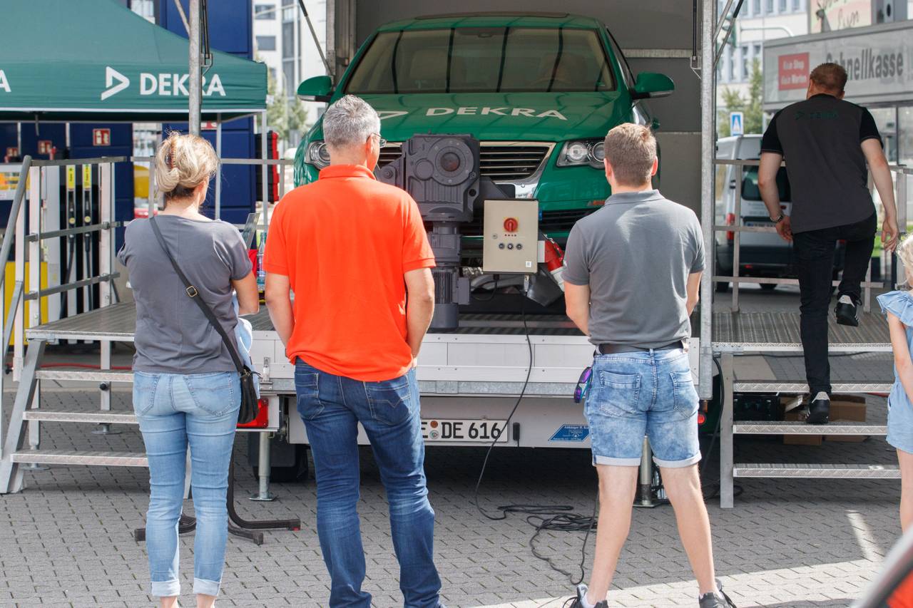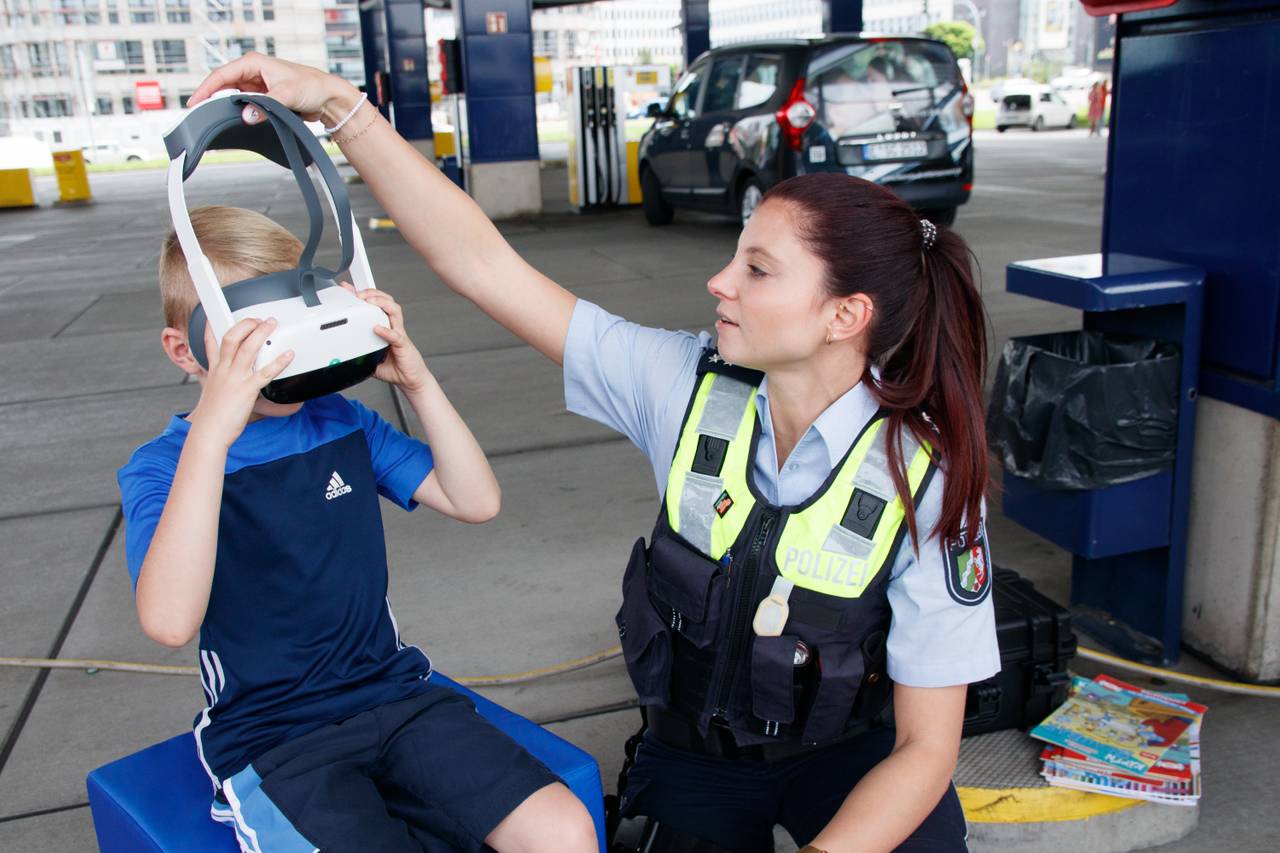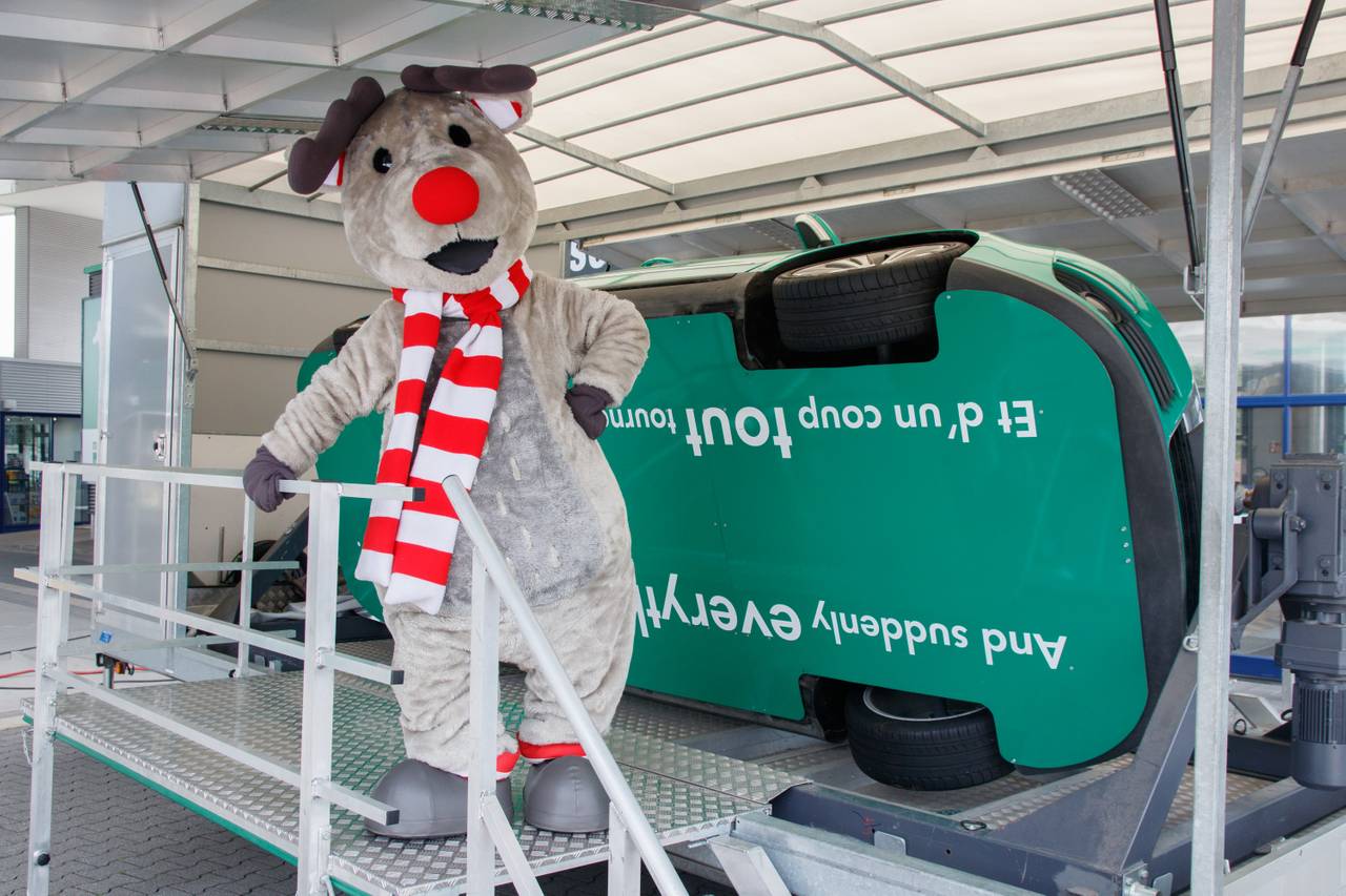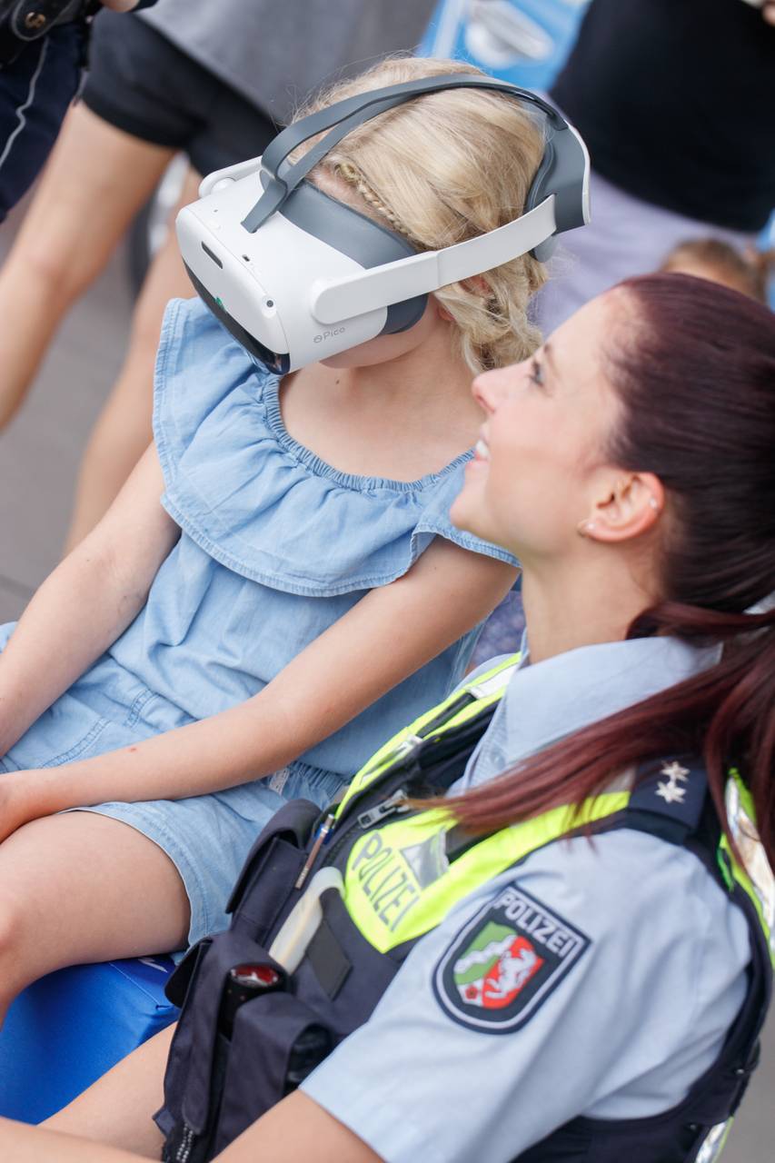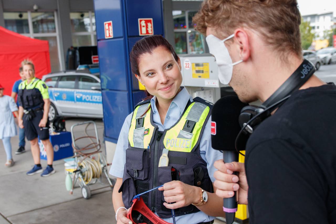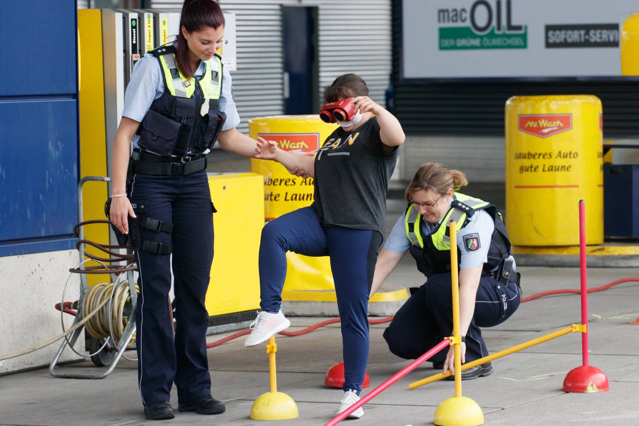 Neben der kostenlosen Autowäsche gab es auch Action beim Radio Essen-Verkehrsmeldertag. Mit der Unterstützung der DEKRA haben wir Euch testen lassen, wie es sich anfühlt, wenn ein Auto sich überschlägt. In einem Überschlagsimulator konnten sich unsere Verkehrsmelderinnen und Verkehrsmelder auf den Kopf drehen lassen. Michael aus dem Westviertel findet, dass der Simulator eine gute Abschreckung ist. Seine Kinder finden es besser als Achterbahn fahren. Außerdem hat die Polizei Essen einen Parcours aufgebaut. Der sah zwar einfach aus, musste aber mit einer bestimmten Brille durchlaufen werden. Die simuliert, wie es sich anfühlt, wenn man Alkohol getrunken hat.