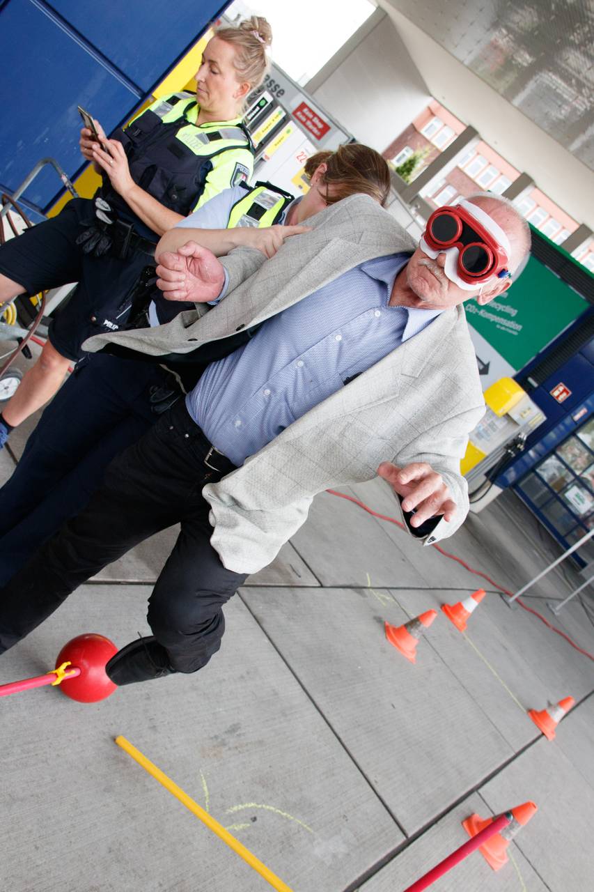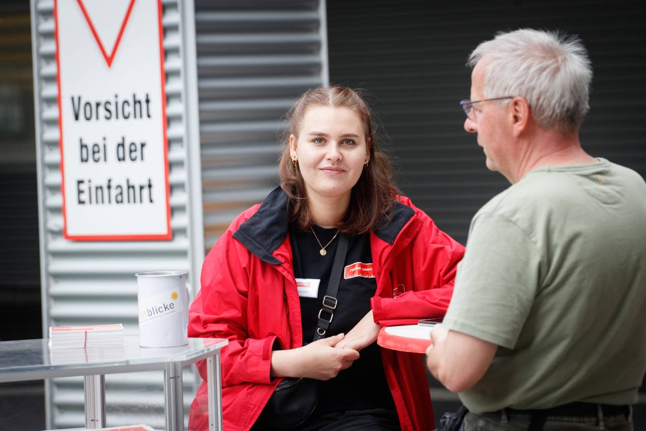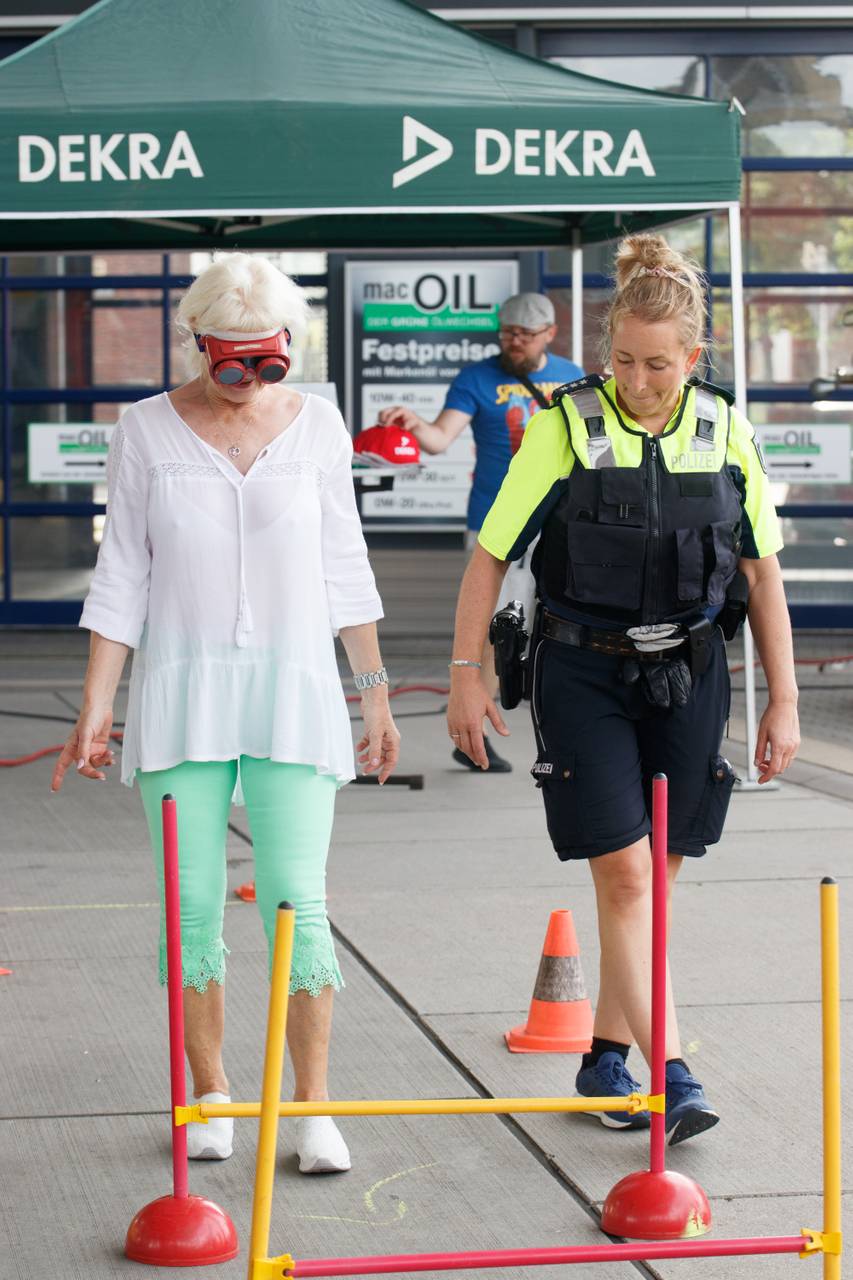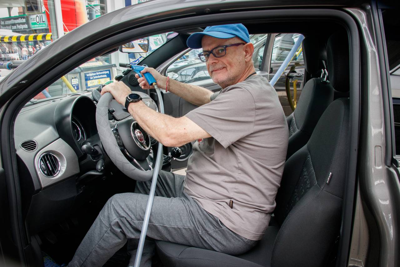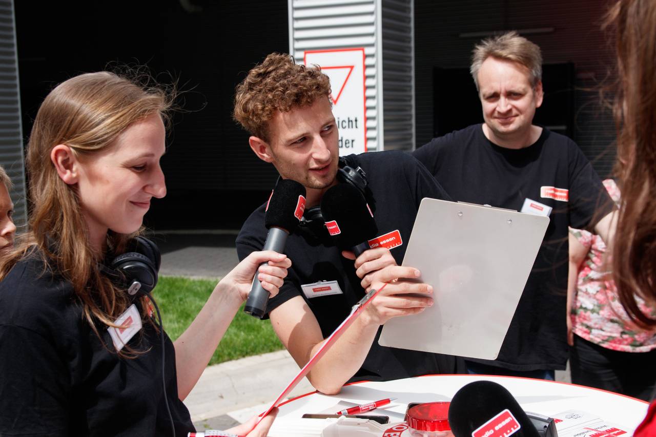 Neben der kostenlosen Autowäsche gab es auch Action beim Radio Essen-Verkehrsmeldertag. Mit der Unterstützung der DEKRA haben wir Euch testen lassen, wie es sich anfühlt, wenn ein Auto sich überschlägt. In einem Überschlagsimulator konnten sich unsere Verkehrsmelderinnen und Verkehrsmelder auf den Kopf drehen lassen. Michael aus dem Westviertel findet, dass der Simulator eine gute Abschreckung ist. Seine Kinder finden es besser als Achterbahn fahren. Außerdem hat die Polizei Essen einen Parcours aufgebaut. Der sah zwar einfach aus, musste aber mit einer bestimmten Brille durchlaufen werden. Die simuliert, wie es sich anfühlt, wenn man Alkohol getrunken hat.