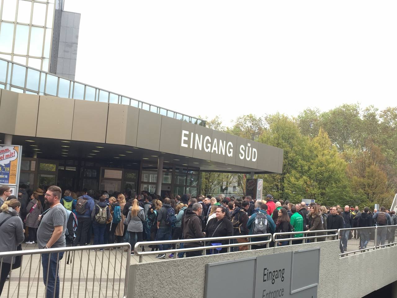 Einige Spiele-Fans stellten sich vor der Eröffnung schon nachts vor die Messe