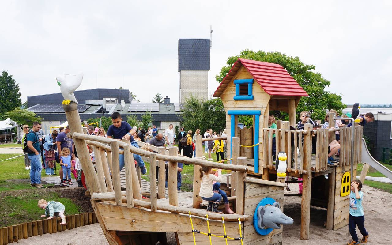 Es war ein besonderer Tag voller Freude: Die Evangelische Kirchengemeinde Burgaltendorf hat ihren neuen Arche-Spielplatz eingeweiht. Auf dem Spielplatz steht ein großes Spielschiff für Kinder.