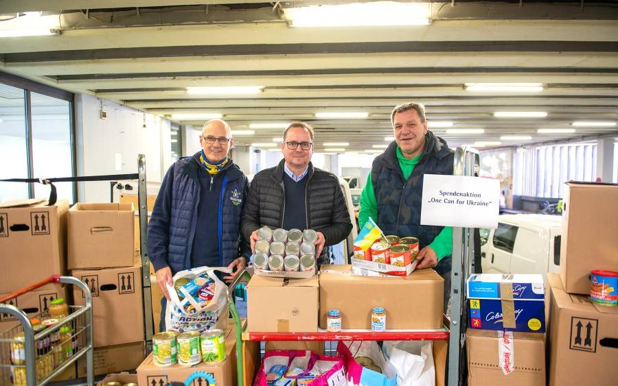 Die Stadt Essen hat bei der Aktion "One Can for Ukraine" mitgemacht und Hilfsgüter für die Ukraine gesammelt. Über 600 Konservendosen, aber auch warme Kleidung, Kinderspielzeug, technisches und medizinisches Material kamen durch die Mitarbeiterinnen und Mitarbeiter der Stadt zusammen. Unterstützung gab es dabei von der Initiative "Werden hilft". Die Haarzopfer Initiative "Lemberg wir kommen" bringt die Spenden jetzt nach Riwne. Das ist die Solidaritätspartnerstadt von Essen.