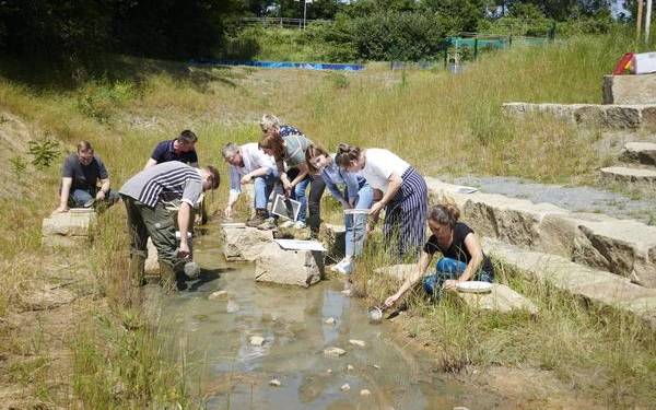 "Im Laufe der Zeit wurde die Viktoriaschule neben dem Katernberger Bach noch von Künstlern angemalt, dass fanden die Kinder aus dem Stadtteil ganz großartig. Dazu kamen noch ein Imkerhaus und eine Parcoursanlage. Heute kann man dort wunderbar spazieren gehen. Durch das neue blaue Klassenzimmer können die Schülerinnen und Schüler der Viktoriaschule jetzt auch draußen Unterricht machen. Mit Gummistiefeln können die Kinder dann den Lebensraum der Tiere im Bach genau untersuchen. Das kommt bei den Kindern super an."