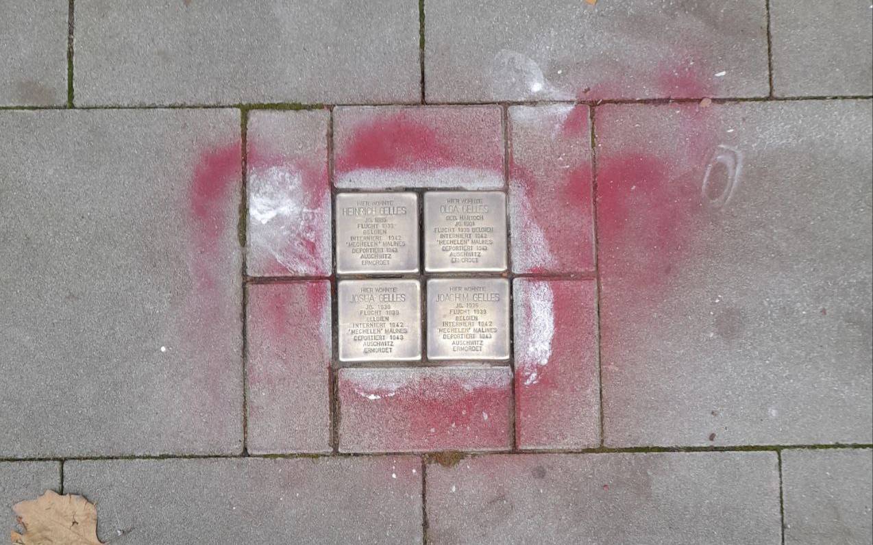 Rund um die Jährung der Progromnacht haben Unbekannte in Essen Stolpersteine mit Farbe beschmiert. Die Steine auf Gehwegen erinnern an die Opfer in der Zeit des Nationalsozialismus.