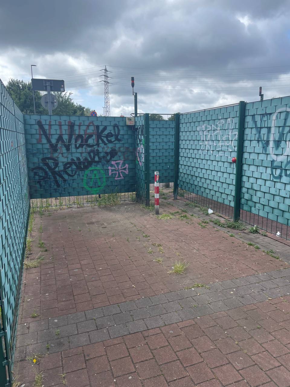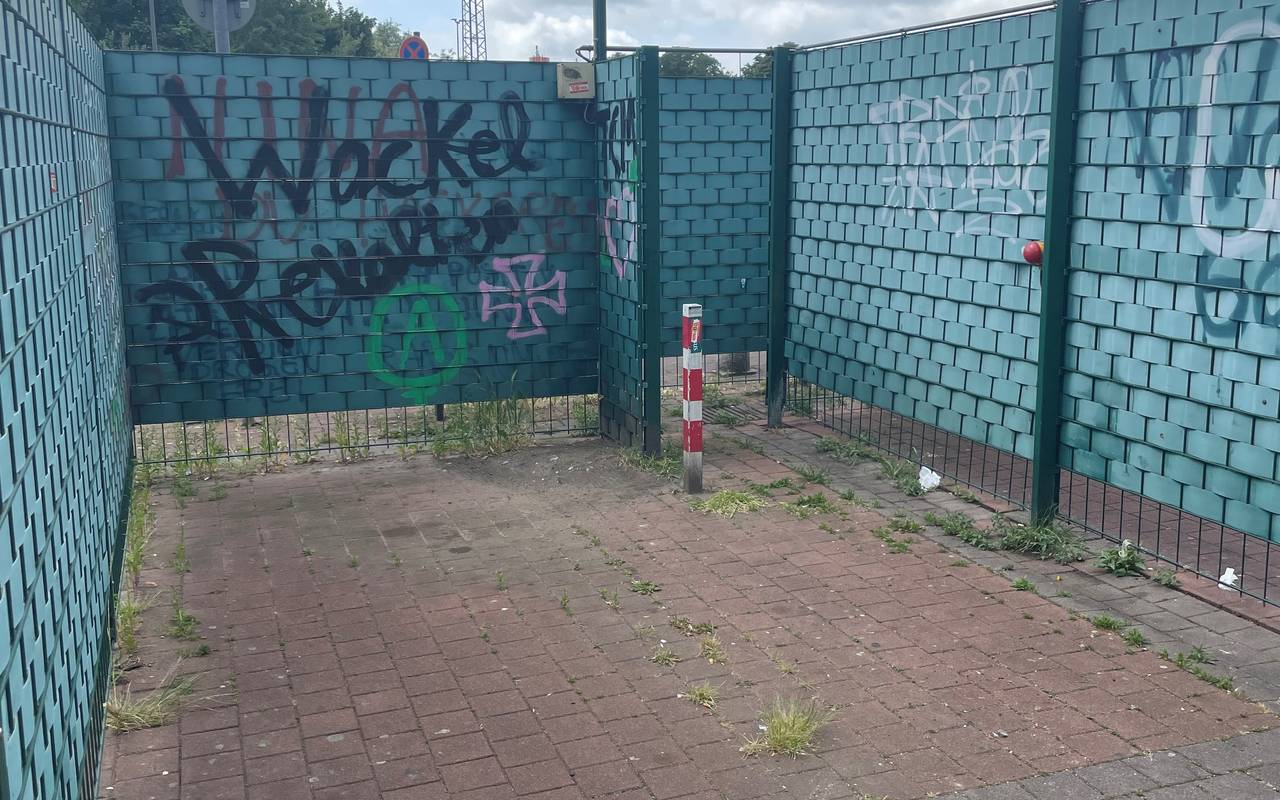 „Die Zettel sind jetzt nicht alle super aktuell, die hängen aber auch ein bisschen länger da, weil man nicht weiß, wann derjenige wieder auf den Platz kommt. Früher, als der Straßenstrich noch am anderen Standort war, da wären wir damit gar nicht ausgekommen. Da haben wir ganze Bücher gefüllt mit Warnhinweisen.“