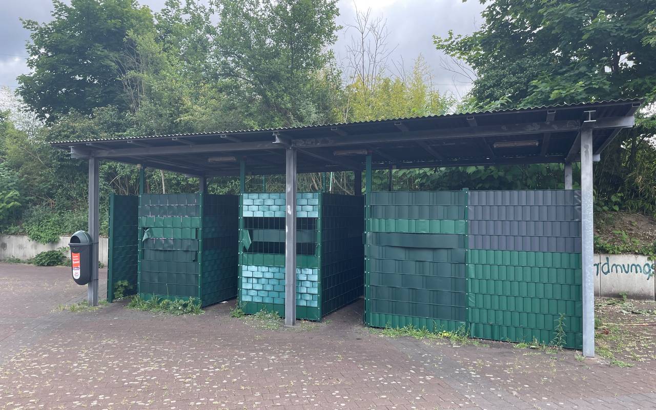 Die einzigen Ecken, die es gibt, sind die der Verrichtungsboxen. Davon existieren drei für Kunden, die zu Fuß oder mit dem Fahrrad kommen, und zehn für Autofahrer. Die Boxen bestehen aus einem Zaun, der mit Sichtschutz verkleidet ist. In den Fußgänger-Verrichtungsboxen gibt es eine Bank – sonst nichts. Es stinkt nach Urin. Auf einer Seite des Zauns ist ein roter Notknopf befestigt. Den kann die Sexarbeiterin drücken, sollte sich ein Kunde zum Beispiel gewalttätig verhalten. Dann erschallt ein akustisches Signal, und eine Lampe blinkt. Die Polizei wird dadurch nicht alarmiert, aber der ganze Platz bekommt es mit und kann zur Hilfe eilen.