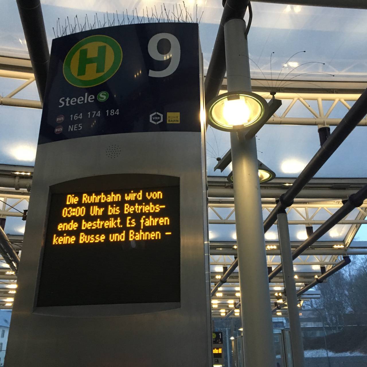 Warnstreiks im öffentlichen Nahverkehr: Es fahren keine Busse und Straßenbahnen in Essen .Die Gewerkschaft Verdi hat zum Warnstreik im öffentlichen nahverkehr aufgerufen.