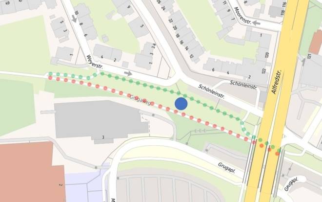 In Essen werden ab Montag (16. September) an der Gruga-Trasse Arbeiten zur Sondierung von Blindgängern aus dem zweiten Weltkrieg durchgeführt. Der Verdachtspunkt ist bei Luftbildauswertungen ermittelt worden. Die Stadt muss die Brücke an der Alfredstraße sanieren und bereitet die Arbeiten vor. Dazu gehört auch immer die Suche nach möglichen Blindgängern im Umfeld der Baustelle. Die Sondierung ist auf der Böschungsfläche zwischen der Schönleinstraße und der Gruga-Trasse. Deshalb werden der Rad- und Fußweg gesperrt. Die Sperrung ist von Montag (16. September) 6:30 Uhr bis Mittwoch (18. September) 17:30 Uhr geplant.