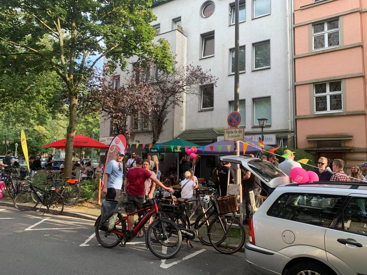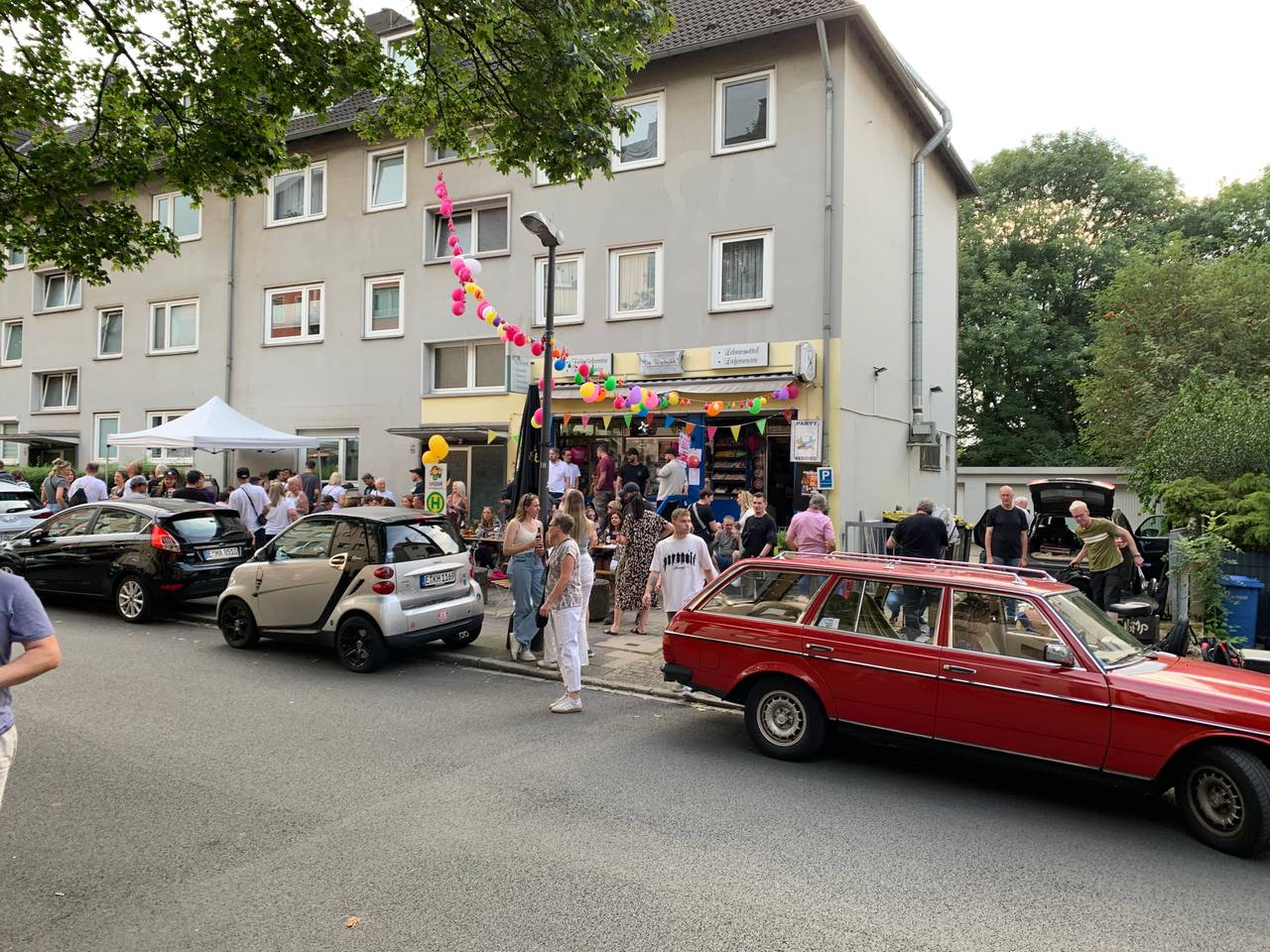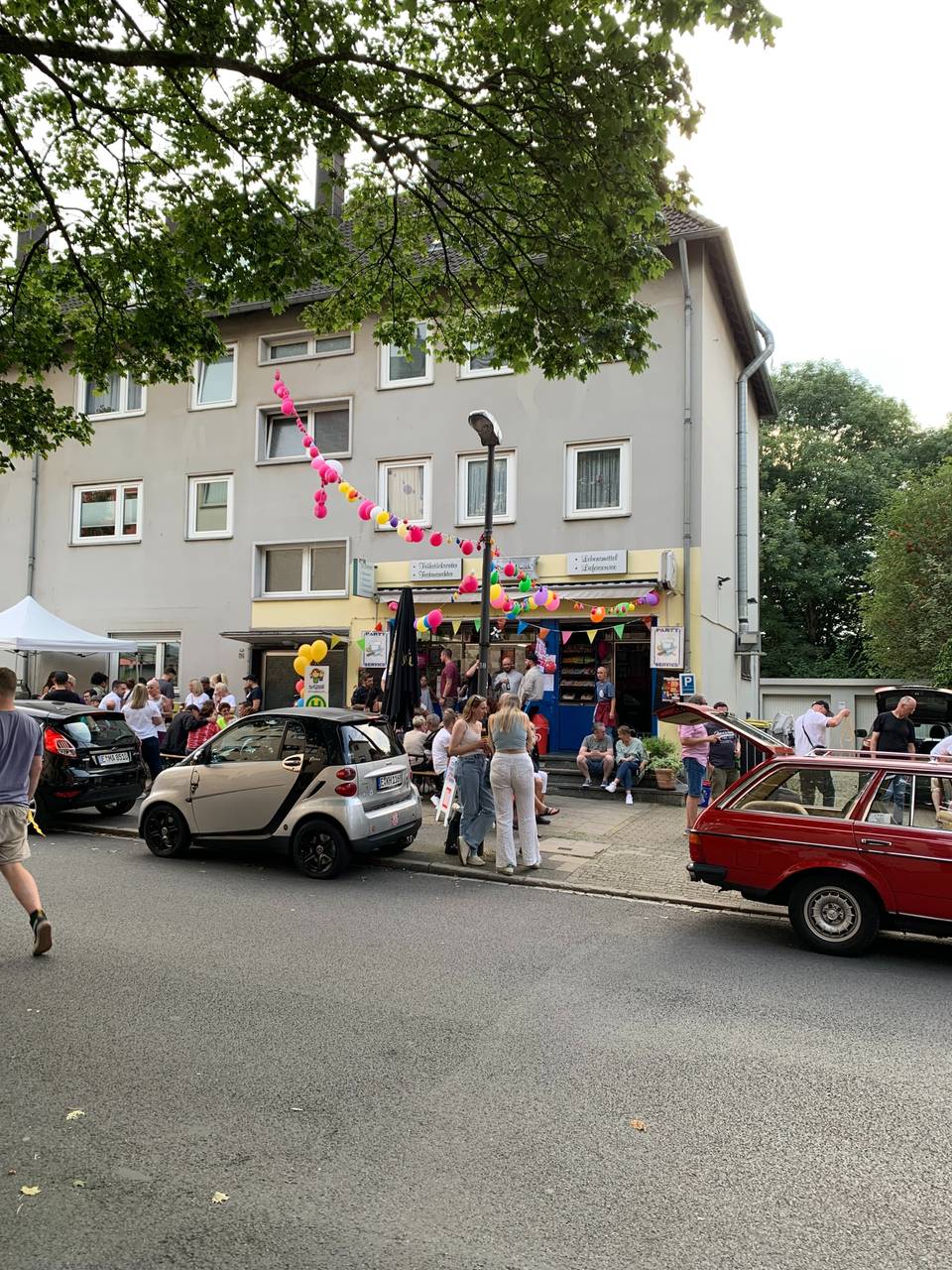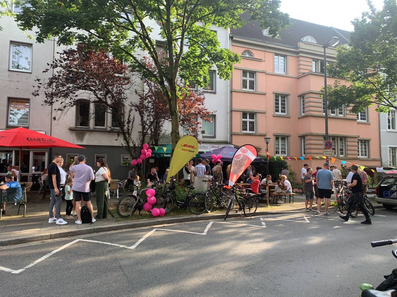An der "Windmühle" in Holsterhausen war alles schön geschmückt zum Tag der Trinkhallen - auch hier waren viele Menschen, die mitten auf der Straße die Stimmung genossen haben. Auch hier gab es ein Musikprogramm. Und: Nach dem eigentlichen Tag der Trinkhallen gibt es noch eine Aftershow-Party in der Kneipe, die zum Kiosk dazugehört.