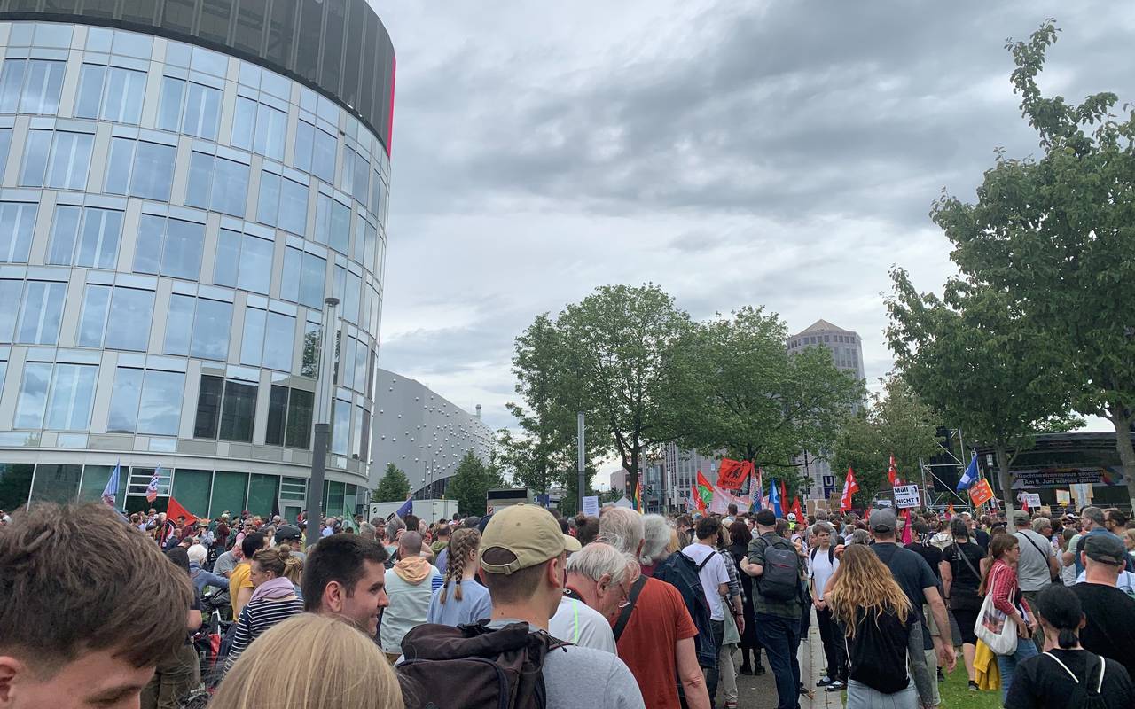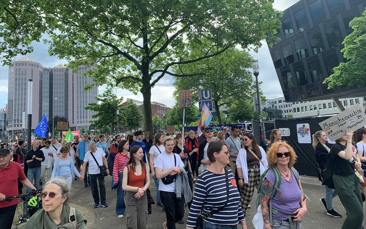 An der Grünen Mitte Essen haben sich am Sonntagnachmittag (26. Mai) tausende Menschen versammelt, um ein Zeichen gegen Rassismus und Rechtsextremismus zu setzen. Aufgerufen zu der Demonstration gegen Rechtsextremismus hatte im Vorfeld die Initiative "Zusammen gegen rechts“ - Radio Essen berichtete. Ab 14.00 Uhr wurde sich an der Grünen Mitte versammelt - dann ging es ab 15.00 Uhr erst über die Hindenburgstraße, dann durch die Innenstadt. Endpunkt war wieder zurück an der Grünen Mitte. Zum Abschluss gab es noch ein Konzert einer Indieband. In der Spitze waren 5.000 Essenerinnen und Essener mit bei der Demonstration dabei, sagt die Polizei Essen. Um 17.00 Uhr konnte die Demonstration planmäßig beendet werden - ohne weitere Vorfälle.