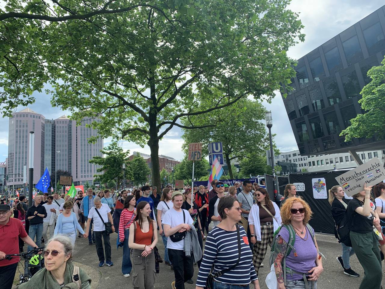 Die Demoteilnehmer waren sehr gemischt - und alle hatten ihre eigenen Gründe, am Sonntag auf die Straße zu gehen. Einige wollten sich auf die Proteste gegen den AfD-Parteitag einstimmen, andere ein Zeichen vor der Europawahl setzen oder klar Position beziehen gegen Hass und Hetze.