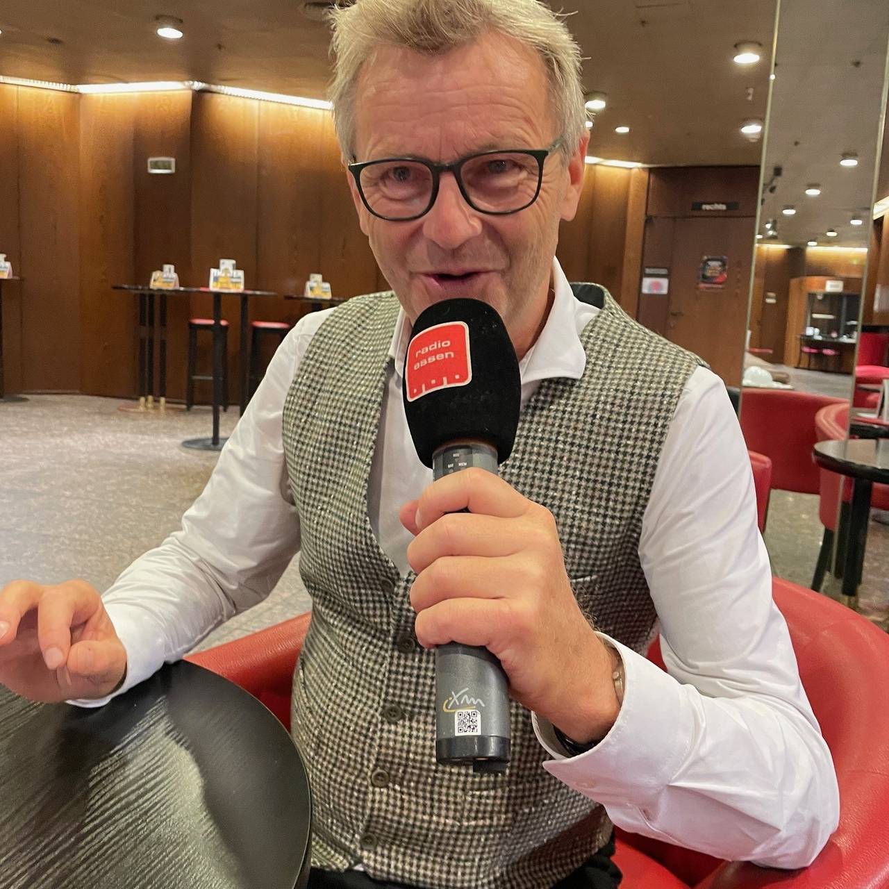 Im Saal des Theater im Rathaus laufen die letzten Proben der Woody Allen Komödie "Vollversammlung im Neurosengarten". Es ist eine Premiere. Theaterchef René Heinersdorff hat das Stück ins Deutsche übersetzt. Der Schauspieler ist in seinem Element und gibt den Kollegen auf der Bühne noch ein paar Tipps. Hier noch eine längere Sprechpause, da den Namen etwas mehr betonen. Die Schauspieler sind dankbar für die Hinweise. Für das Interview mit Radio Essen-Stadtreporter Timm Schröder kommt er in das Foyer des Theaters im Rathaus. Die Beiden nehmen in den roten Sesseln Platz und Heinersdorff erzählt von seinem Urgroßvater, der schon einen Konzertsaal in Düsseldorf hatte. Seine Eltern hatten in der Landeshauptstadt eine Veranstaltungsagentur und ein Theater. So etwas prägt. Der 61-Jährige ist heute ein erfolgreicher Theater- und Fernsehschauspieler, Synchronsprecher, Regisseur und Autor. Außerdem ist er der Theaterdirektor von sechs Häusern in ganz Deutschland. Darunter in Köln, München und Düsseldorf. Sein großes Sorgenkind ist aber das Theater im Rathaus in Essen.