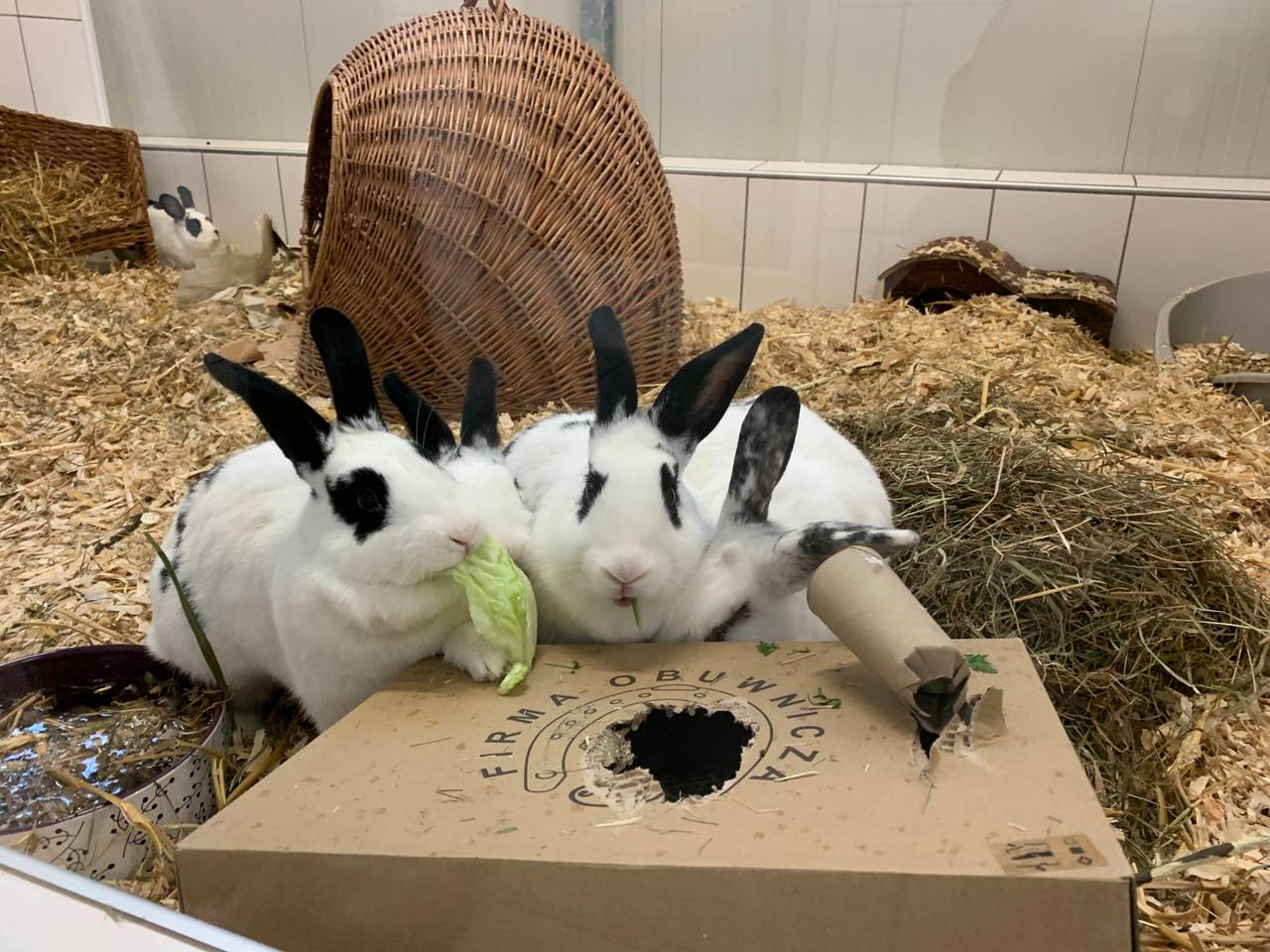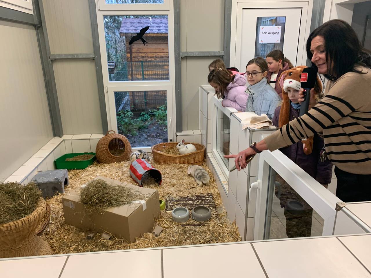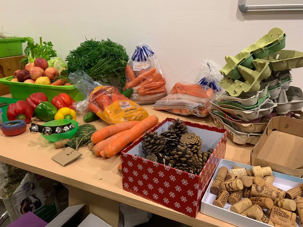 Beim gemeinsamen Basteln sind kleine Futterboxen und Beschäftigungs-Spielezeuge entstanden. Die Kinder haben zum Beispiel aus alten Eierkartons Gemüsekartons mit Löchern gebaut, aus denen die Tiere ihr Futter herausfischen können. Die entstandenen Boxen durften die Kinder im Anschluss selber in die Tiergehege bringen. Das Staunen war groß, als sich die kleinen Nagetiere sofort auf die Futterboxen gestürzt haben.
