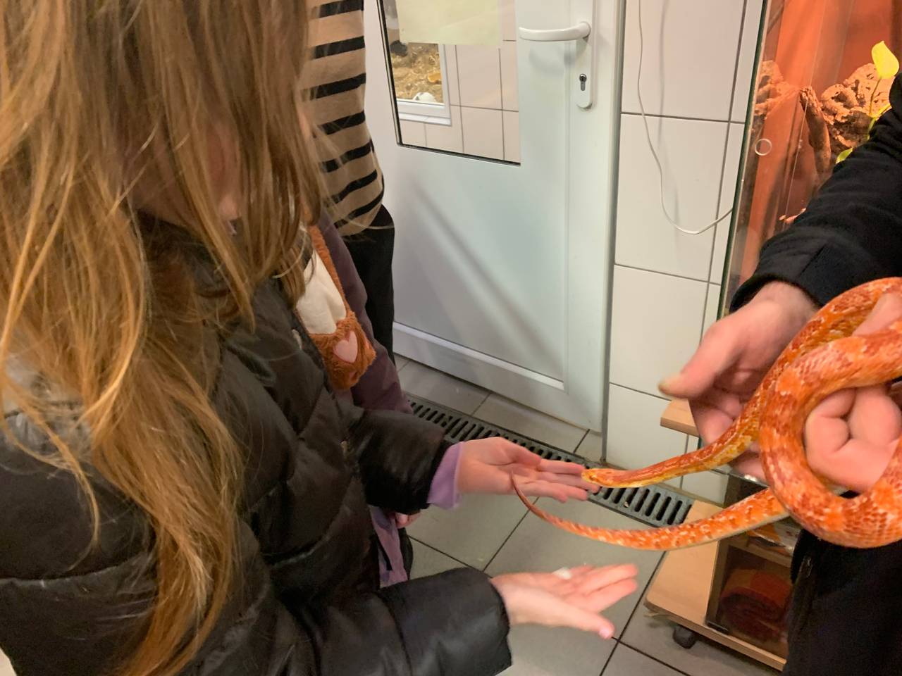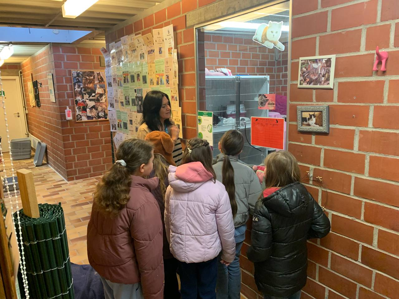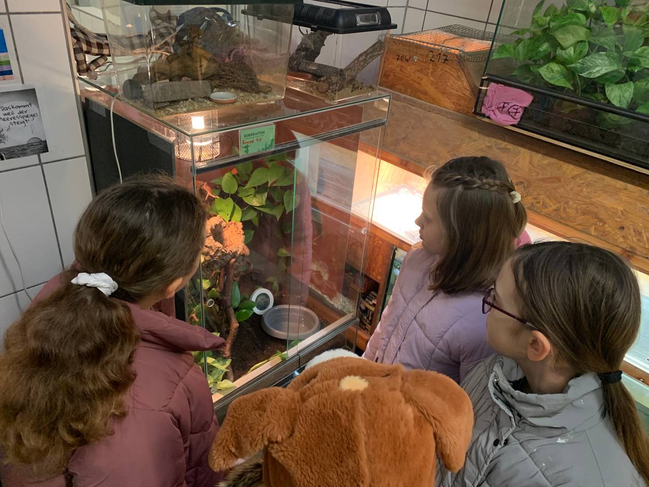 Am Donnerstag (21.12.) haben Kinder im Tierheim Essen für den guten Zweck gebastelt. Gemeinsam mit der Tierschutzlehrerin Sandra Jansen haben sie Spielzeuge und Futterbeschäftigungen für die Tiere gewerkelt. Zum Start gab es eine Führung durch das Tierheim. Sandra Jansen zeigte die unterschiedlichen Tier-Stationen und erklärte den Kindern alles rund um Ernährung, Haltung und Zusammenleben. Zuerst ging es zu den Katzen, weiter zu Hasen und Meerschweinchen bis hin zu den Exoten. Mit großen Augen und Herzklopfen ging es unter Aufsicht auch zu Schlangen, Echsen und Schildkröten.
