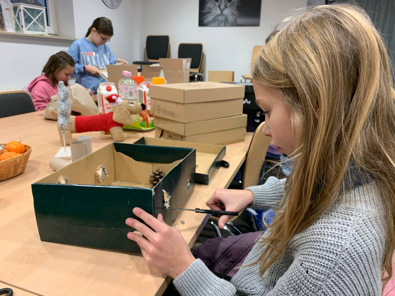 Im Tierheim Essen im Nordviertel haben Kinder am Donnerstag (21. Dezember) Weihnachtsgeschenke für Tiere gebastelt. Sonst landen Papprollen und Schuhkartons im Altpapier - hier sind allerdings neue Futterboxen und Spielzeuge entstanden.