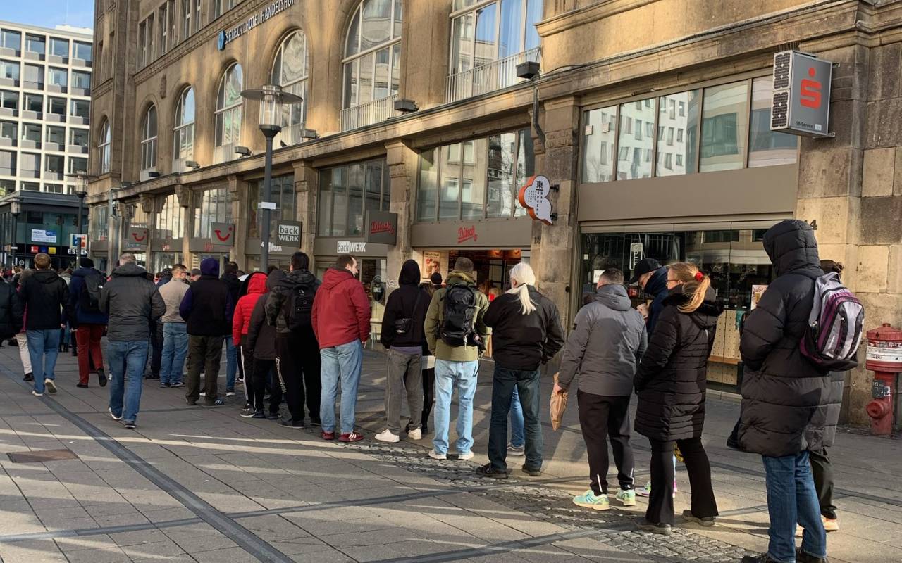Warteschlange für Trikot bis zum Hauptbahnhof Essen