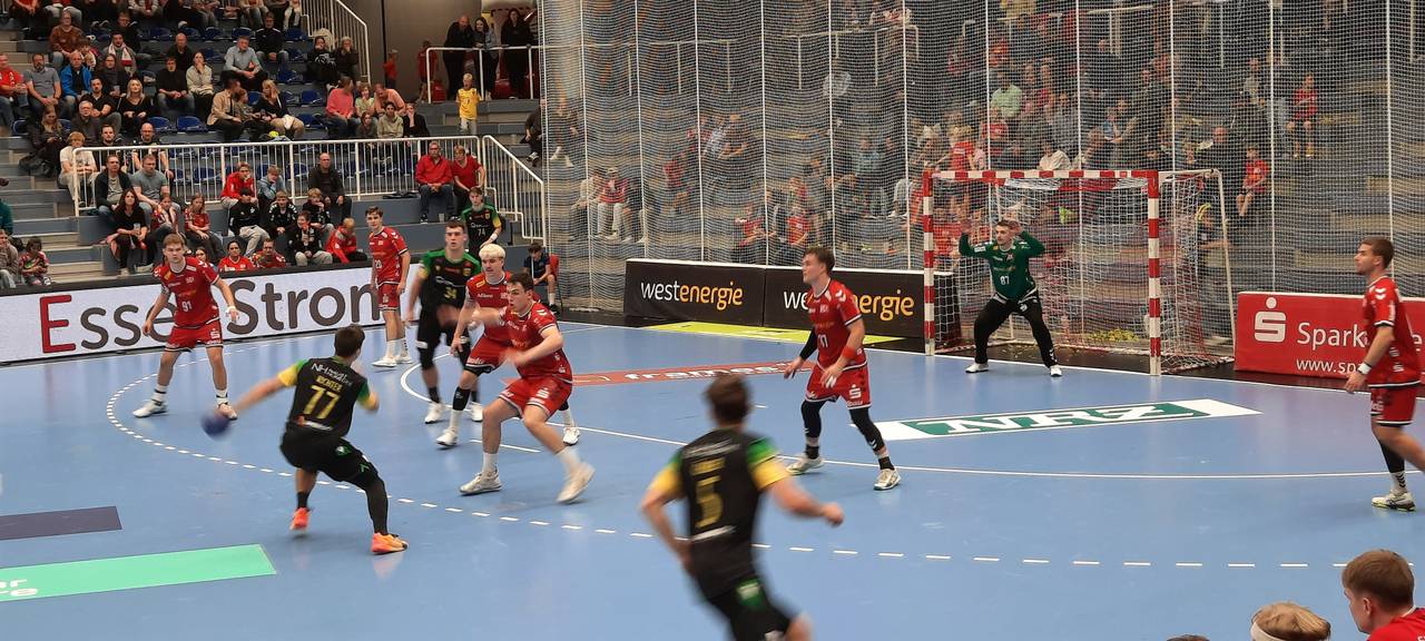 TUSEM Essen - VfL Eintracht Hagen 25:23 (13:11). TUSEM Essen: Felix Eißing (1), Felix Göttler (1), Nils Homscheid (2), Oskar Kostuj (2), Tim Mast (5), Max Neuhaus (1), Jan Reimer (6), Alexander Schoss (1), Dennis Szcesny (1), Lev Szuharev (2), Christian Wilhelm (2), Finn Wolfram (1). VfL Eintracht Hagen: Andre Alves (1), Jan von Boenigk (5), Pierre Busch (4), Israel Benedikt (2), Jan-Lars Gaubatz (1), Josip Jukic (1), Pouya Norouzinezhad (4), Max Öhler (2), Niclas Pieczkowski (2), Kim Voss-Fels (1).