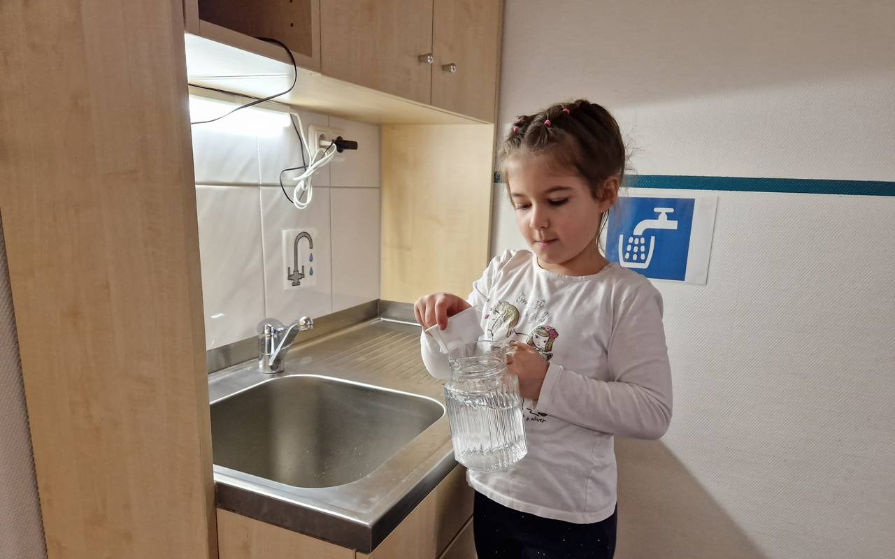 "Wasser ist eine wertvolle Ressource" - das lernen die Kinder der Kita St. Augustinus in Frohnhausen. Im Garten haben die Erzieherinnen und Erzieher gemeinsam mit den Kindern Trinkwasserstationen für Eichhörnchen und Vögel gebaut. Es gibt viele selbstgebaute Hochbeete, wo eigenes Gemüsen geerntet wird. Die Kinder lernen richtige Mülltrennung und wie wichtig Wasser ist. In den Gruppen hängen kleine Bildchen, die die Kinder daran erinnern Wasser zu sparen. Auf dem Flur steht eine Wasserstation. Dort können sich die Kinder selbstständig Wasser abfüllen.