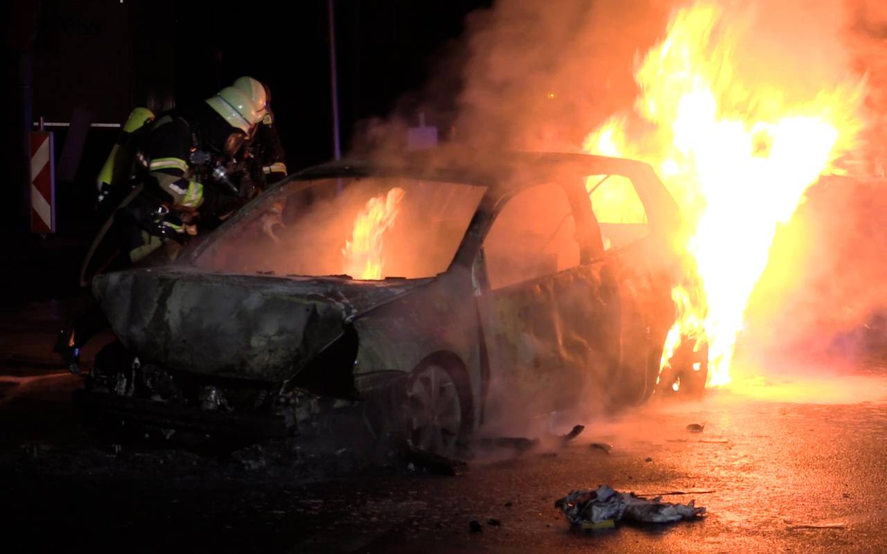 Bei einem schweren Verkehrsunfall am Dienstagabend (5. Februar) ist ein Auto in Flammen aufgegangen. Offenbar hat sich ein anderes Auto beim Überholen verschätzt.