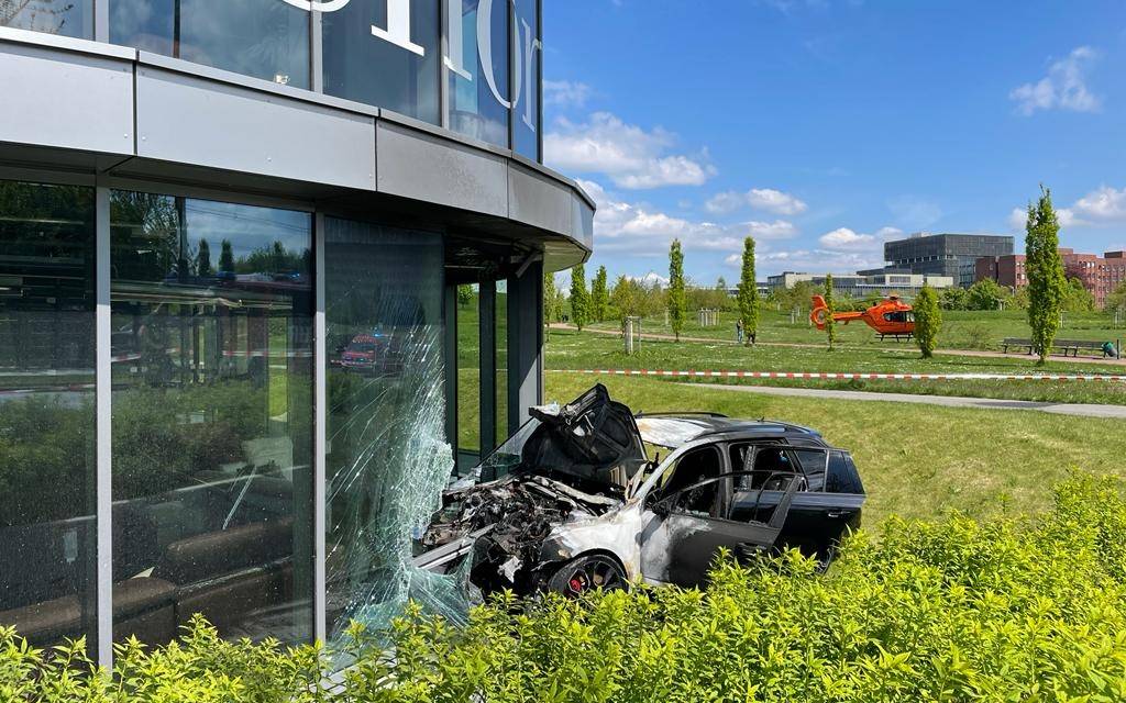 Unfall in Essen: Auto kracht in Geschäft und geht in Flammen auf - Schwerverletzte