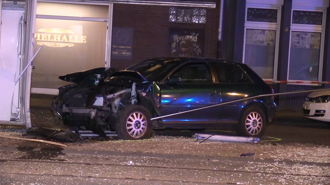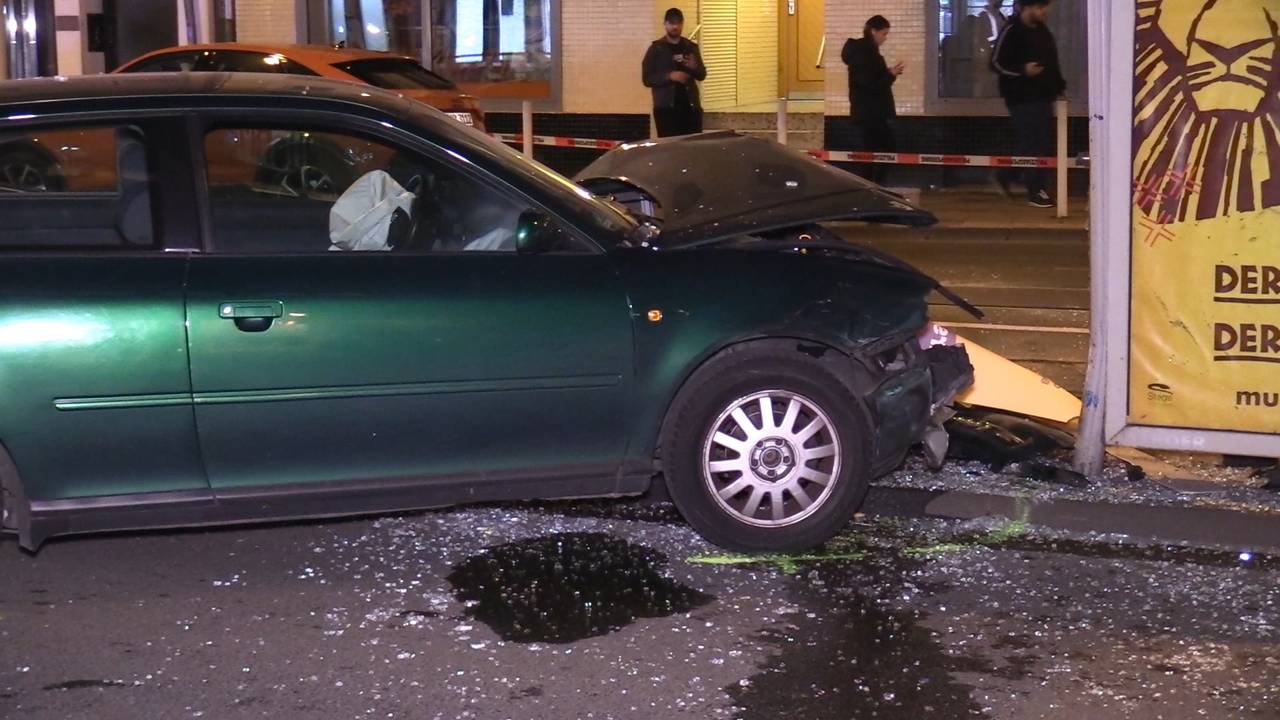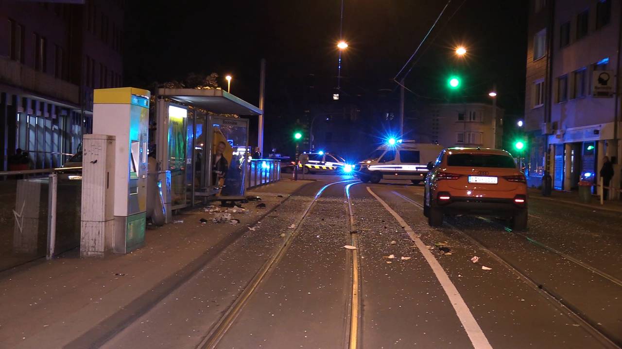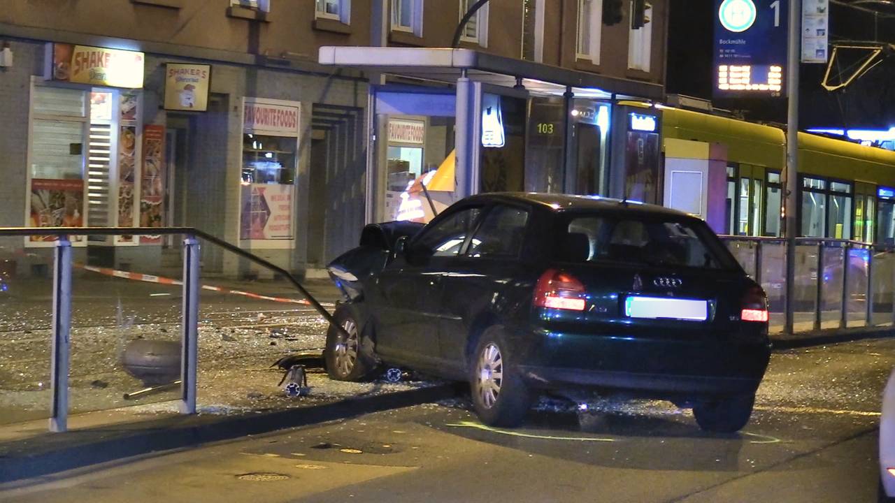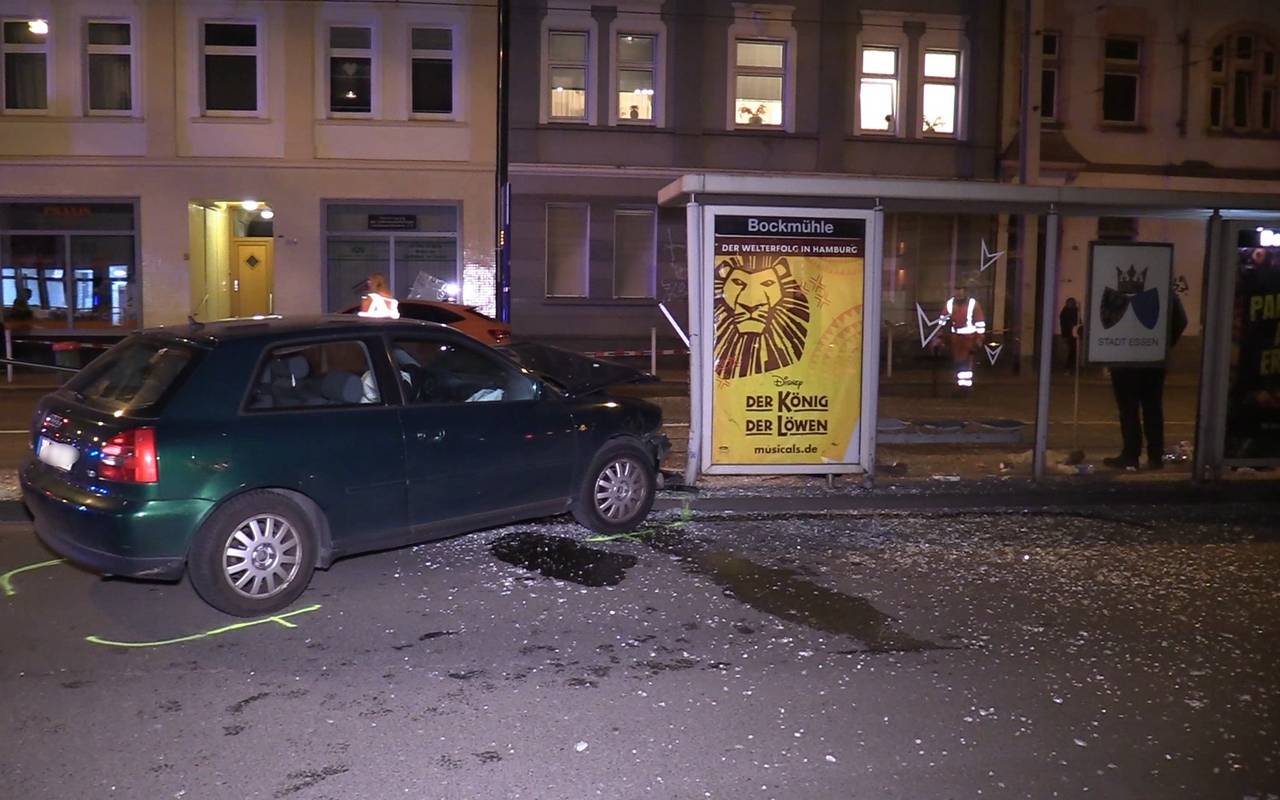 Auto kracht in Essen in Straßenbahnhaltestelle
