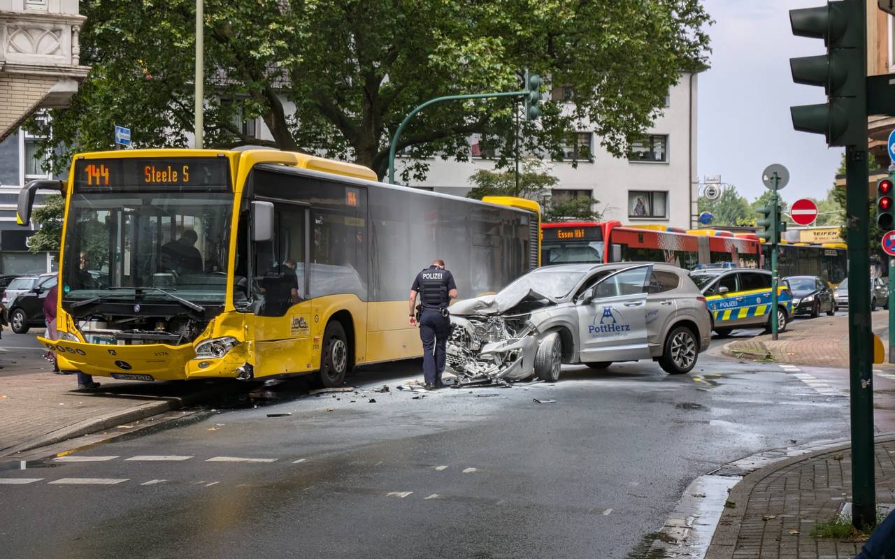 Unfall in Essen: Auto kracht mit Bus zusammen