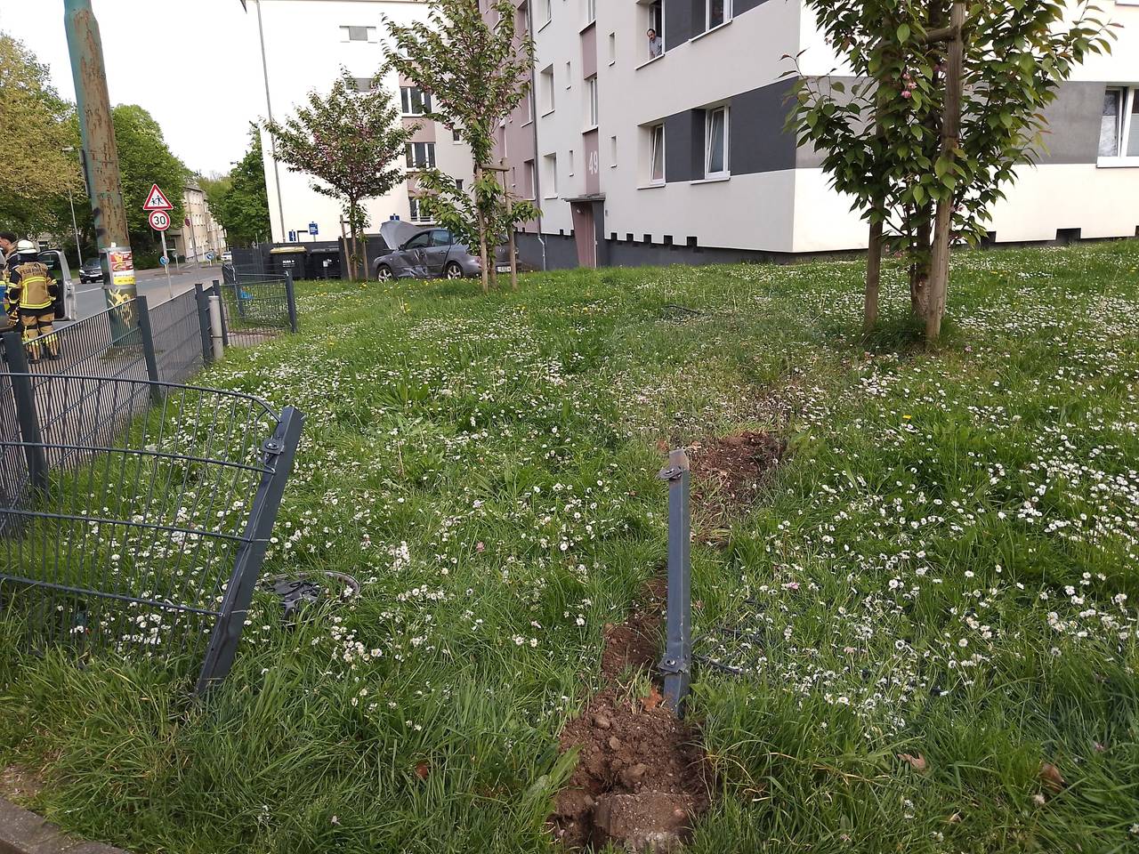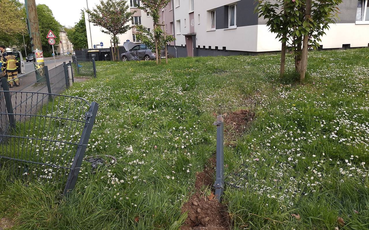 In Essen hat ein Auto bei einem Unfall einen Zaun durchbrochen. Es ist erst auf der Grünfläche vor einem Haus zum Stehen gekommen.