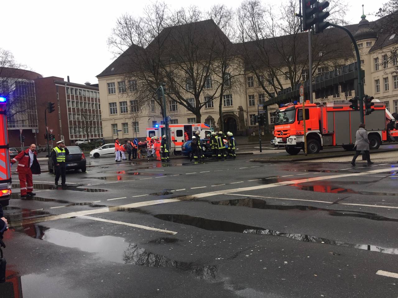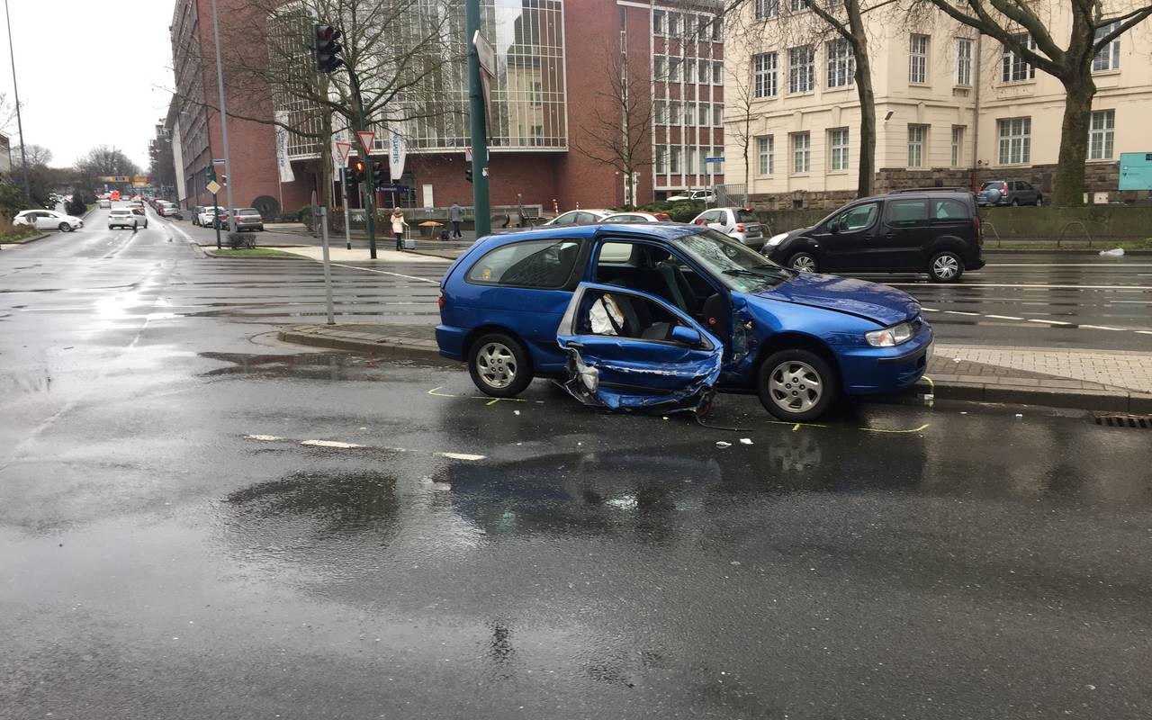 In der Essener Innenstadt sind zwei Autos zusammengestoßen. Die betroffene Kreuzung war zeitweise größtenteils gesperrt. Zwei Autofahrer mussten ins Krankenhaus.