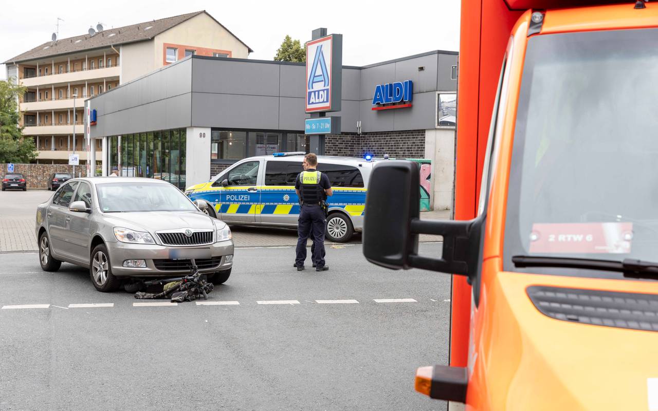 Auto und E-Scooter in Essen stoßen zusammen