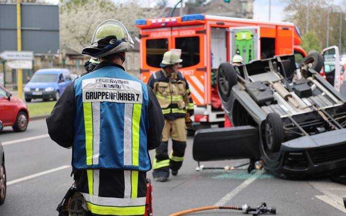 In Essen hat es einen schweren Unfall gegeben. Ein Auto landete dabei auf dem Dach. Es gab unter anderem Schwerverletzte.