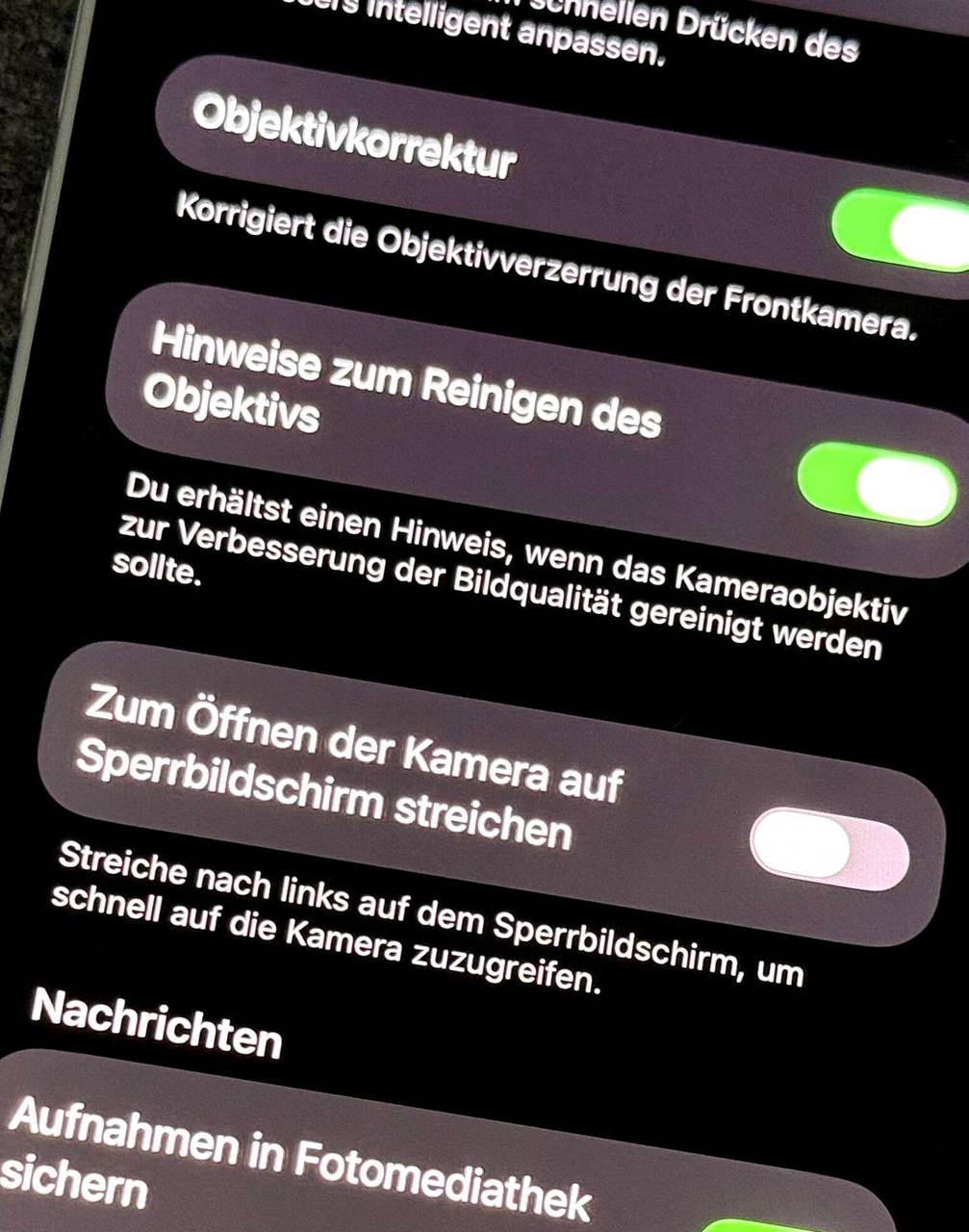 In der jüngst veröffentlichten Vorschauversion von iOS 26.1 (Beta 4) findet sich in den Kameraeinstellungen ein Schieberegler namens «Zum Öffnen der Kamera auf Sperrbildschirm streichen». Mit ihm lässt sich die Wischgeste abstellen.