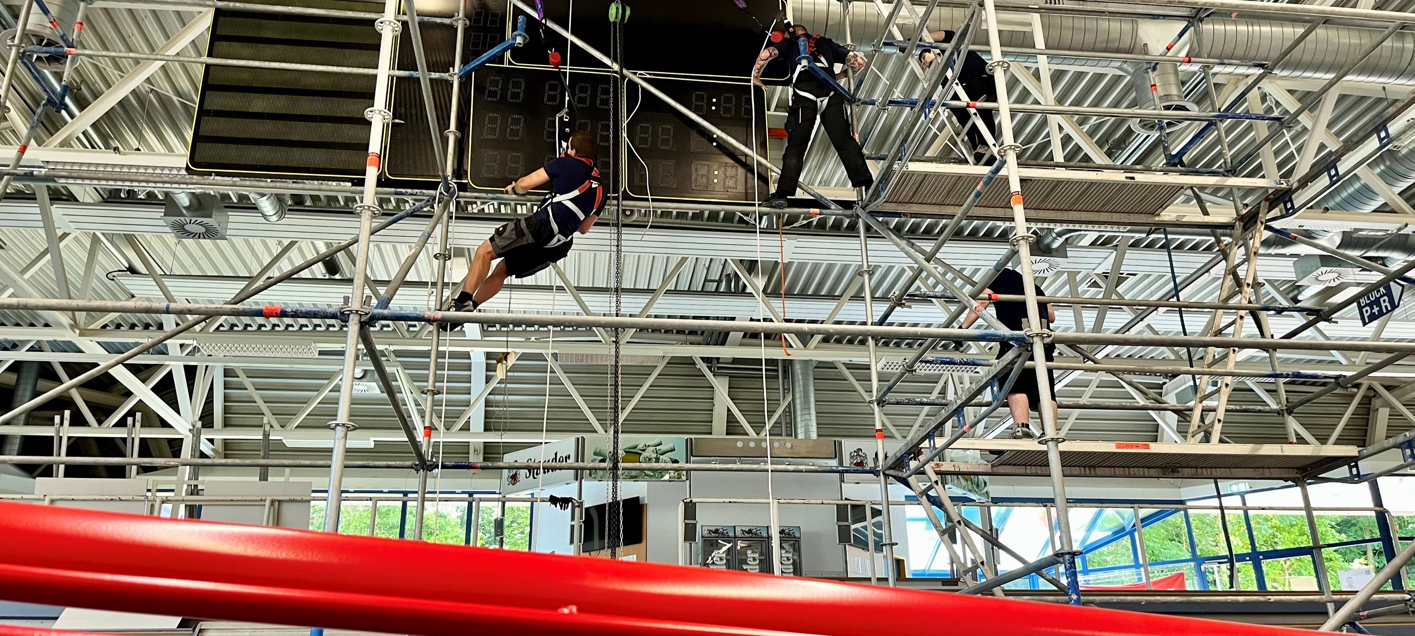 Firma aus Essen montiert Tafeln in der Sporthalle