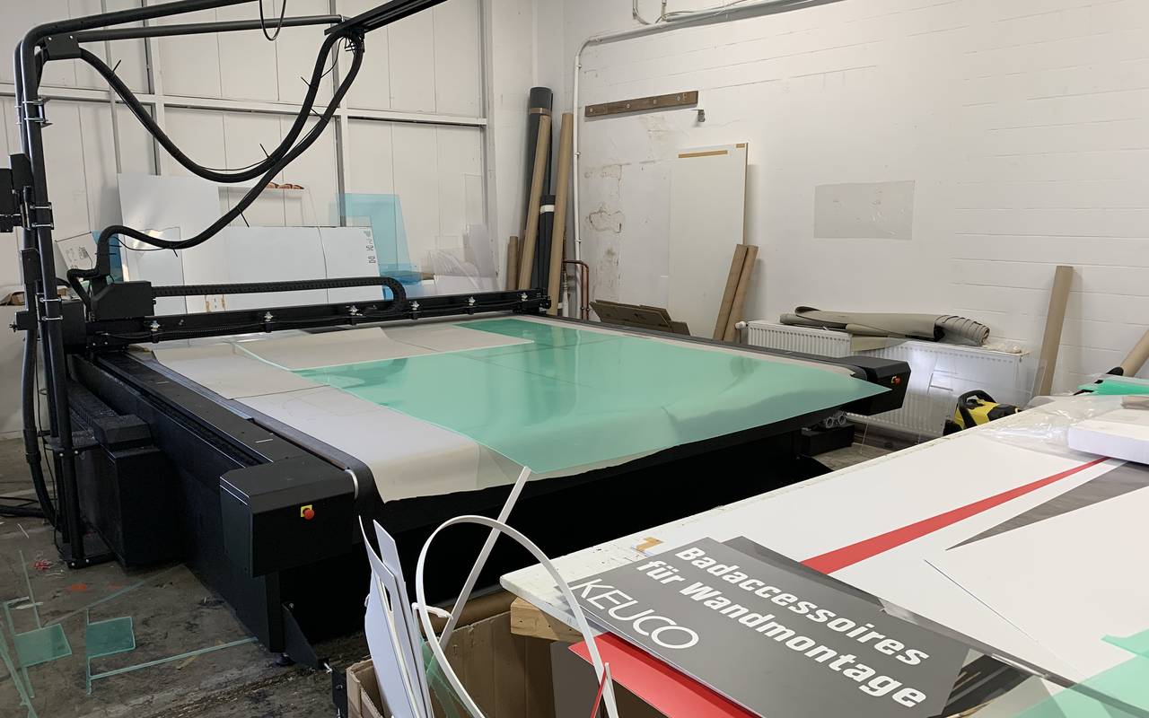 Doch statt den Laden dicht zu machen und die Krise auszusitzen, versuchte sich Thomas Marx mit der Situation abzufinden und neue Ideen zu entwickeln. Jetzt werden in dem kleinen Betrieb Plexiglasscheiben als Tröpchenschutz hergestellt. Eine wirklich gute Idee, die der Firma von Thomas Marx wieder Aufwind gab "Wir sind mit der Produktion gar nicht nachgekommen, weil viele Ärzte oder Apotheken unbedingt einen Schutz brauchten." Außerdem werden Bodenaufkleber mit Abstandshinweisen produziert. "Wir haben zehn Mitarbeiter und die müssen bezahlt werden. Da ist jetzt einfach Kreativität gefragt."