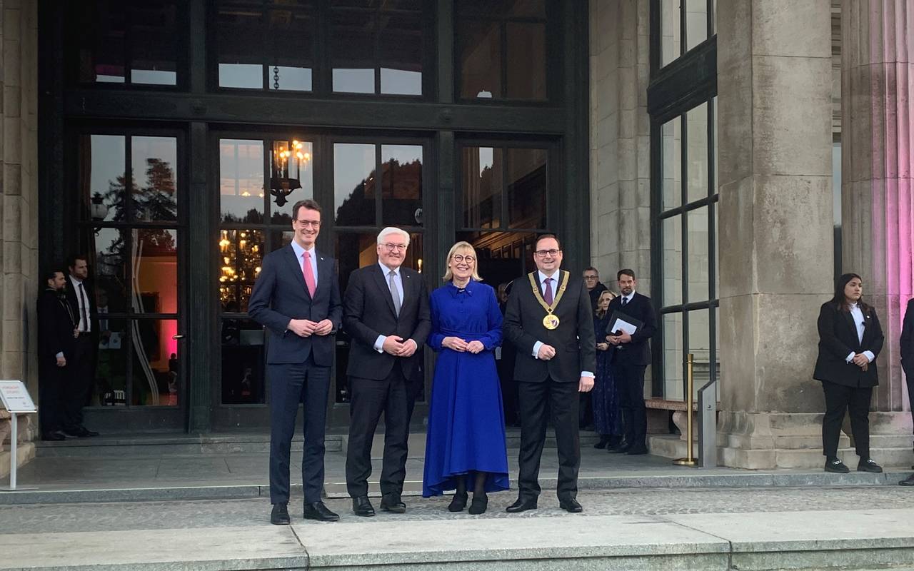 Rund 200 Journalistinnen und Journalisten erwarteten den Bundespräsidenten heute in der Villa Hügel in Bredeny. Zuerst gab es eine Führung durch die Räume der 150 Jahre alten Villa. Als nächstes wird die Videoinstallation eröffnet. Unsere Radio Essen Stadtreporter sind bei der Veranstaltung mit dabei.