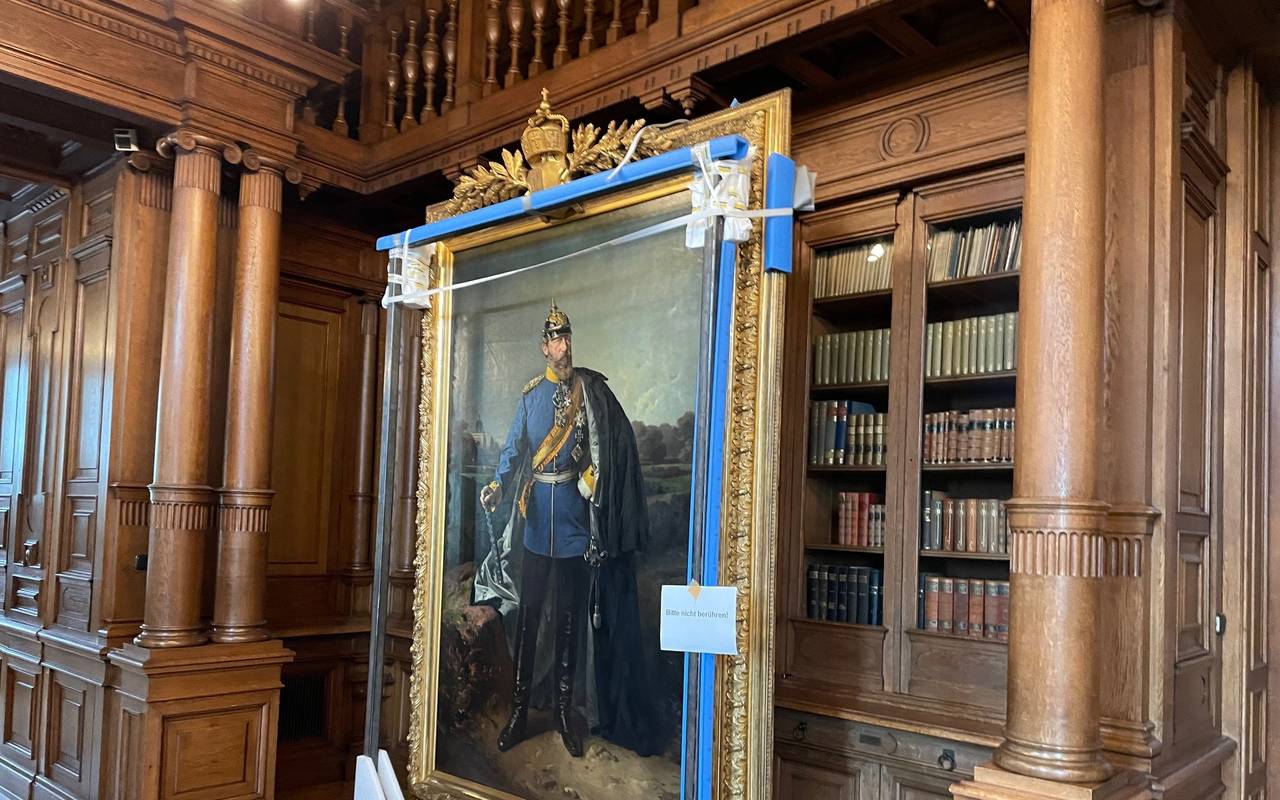 Viele fleißige Hände bringen die Villa Hügel in Essen-Bredeney aktuell auf Hochglanz. Dafür riecht es nicht nur in der großen Eingangshalle nach Bohnerwachs - es fehlen auch einige der großen Gemälde. In der Bibliothek werden sie penibel gereinigt und das ist noch längst nicht alles.