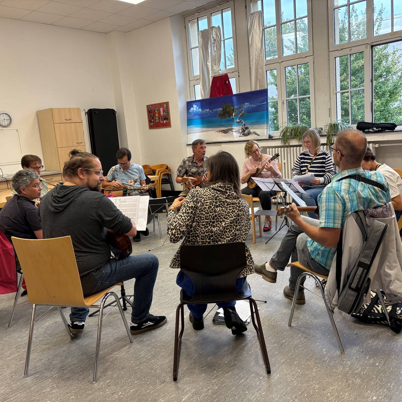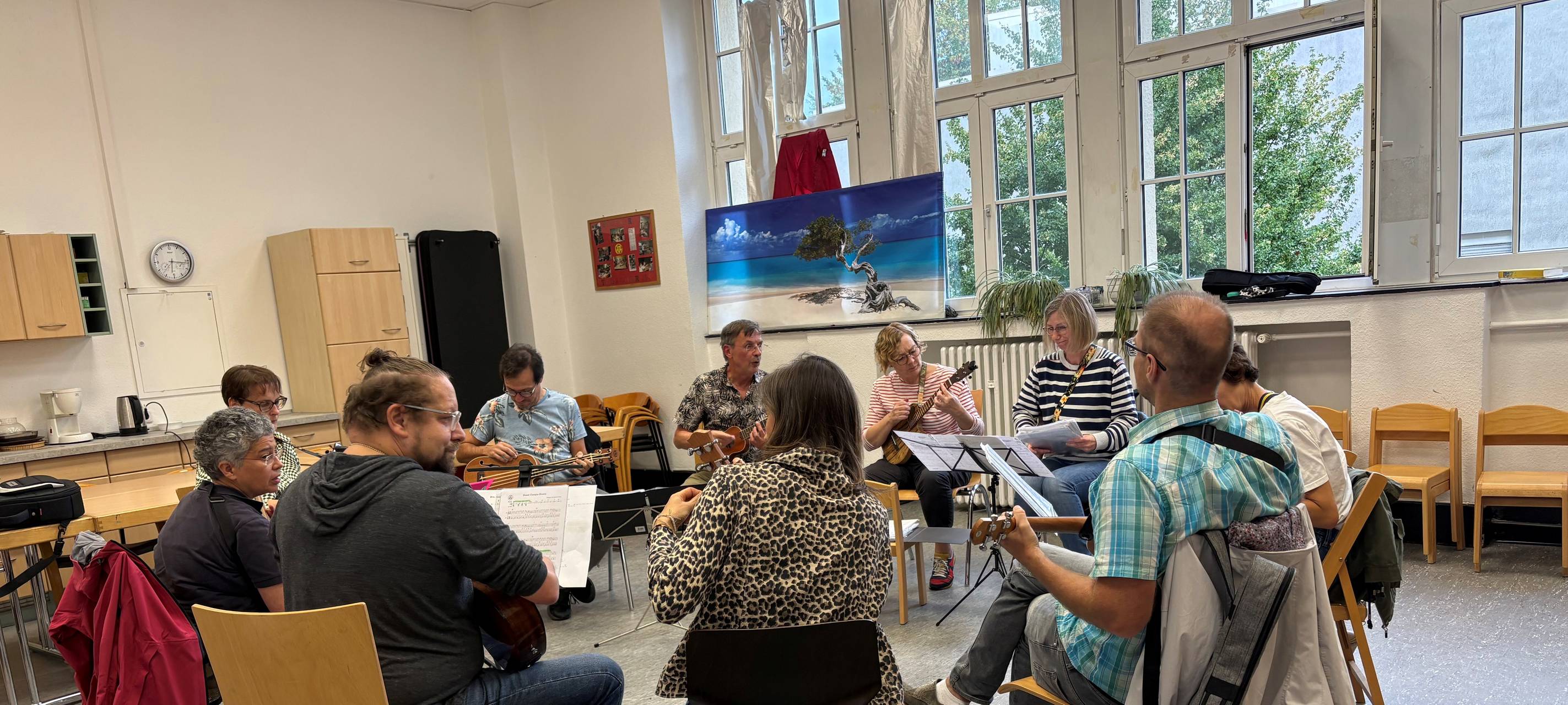 Seit 2022 gibt es in Essen das Ukuleleorchester "Anne Uke". Die Gruppe hat sich auf Initiative von Gerd Basler und einer Mitspielerin zusammen gefunden. 16 Frauen und Männer treffen sich Donnerstagsabends um 18 Uhr in der Villa Rü. Dann werden erst einmal die Instrumente gestimmt, es wird geplaudert, gelacht und die Stimmung ist entspannt. Dann geht es los mit dem ersten Stück - aufwärmen. Das klappt schon ganz gut. Das zweit Stück klingt noch ein bisschen besser. Danach wird an einem neuen Stück gearbeitet. Die Musikerinnen und Musiker üben immer wieder den Einstieg, hören auf, fangen wieder von vorn an. Das ist der schwierige Teil in der Probe, aber auch das, was am Ende, wenn alles gut zusammen klingt, der Erfolg ist. Unserer Radio Essen-Stadtreporterin erzählen sie, was ihnen fehlen würde, wenn sie nicht mehr zusammen spielen könnten.