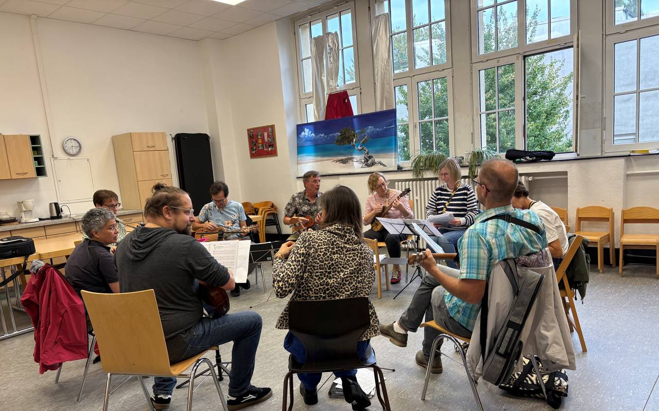Seit 2022 gibt es in Essen das Ukuleleorchester "Anne Uke". Die Gruppe hat sich auf Initiative von Gerd Basler und einer Mitspielerin zusammen gefunden. 16 Frauen und Männer treffen sich Donnerstagsabends um 18 Uhr in der Villa Rü. Dann werden erst einmal die Instrumente gestimmt, es wird geplaudert, gelacht und die Stimmung ist entspannt. Dann geht es los mit dem ersten Stück - aufwärmen. Das klappt schon ganz gut. Das zweit Stück klingt noch ein bisschen besser. Danach wird an einem neuen Stück gearbeitet. Die Musikerinnen und Musiker üben immer wieder den Einstieg, hören auf, fangen wieder von vorn an. Das ist der schwierige Teil in der Probe, aber auch das, was am Ende, wenn alles gut zusammen klingt, der Erfolg ist. Unserer Radio Essen-Stadtreporterin erzählen sie, was ihnen fehlen würde, wenn sie nicht mehr zusammen spielen könnten.