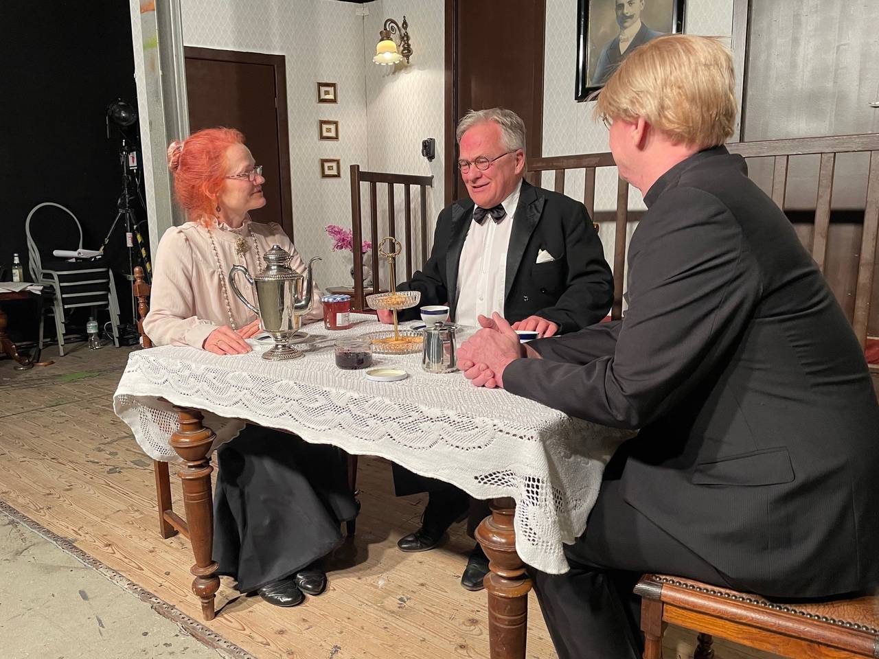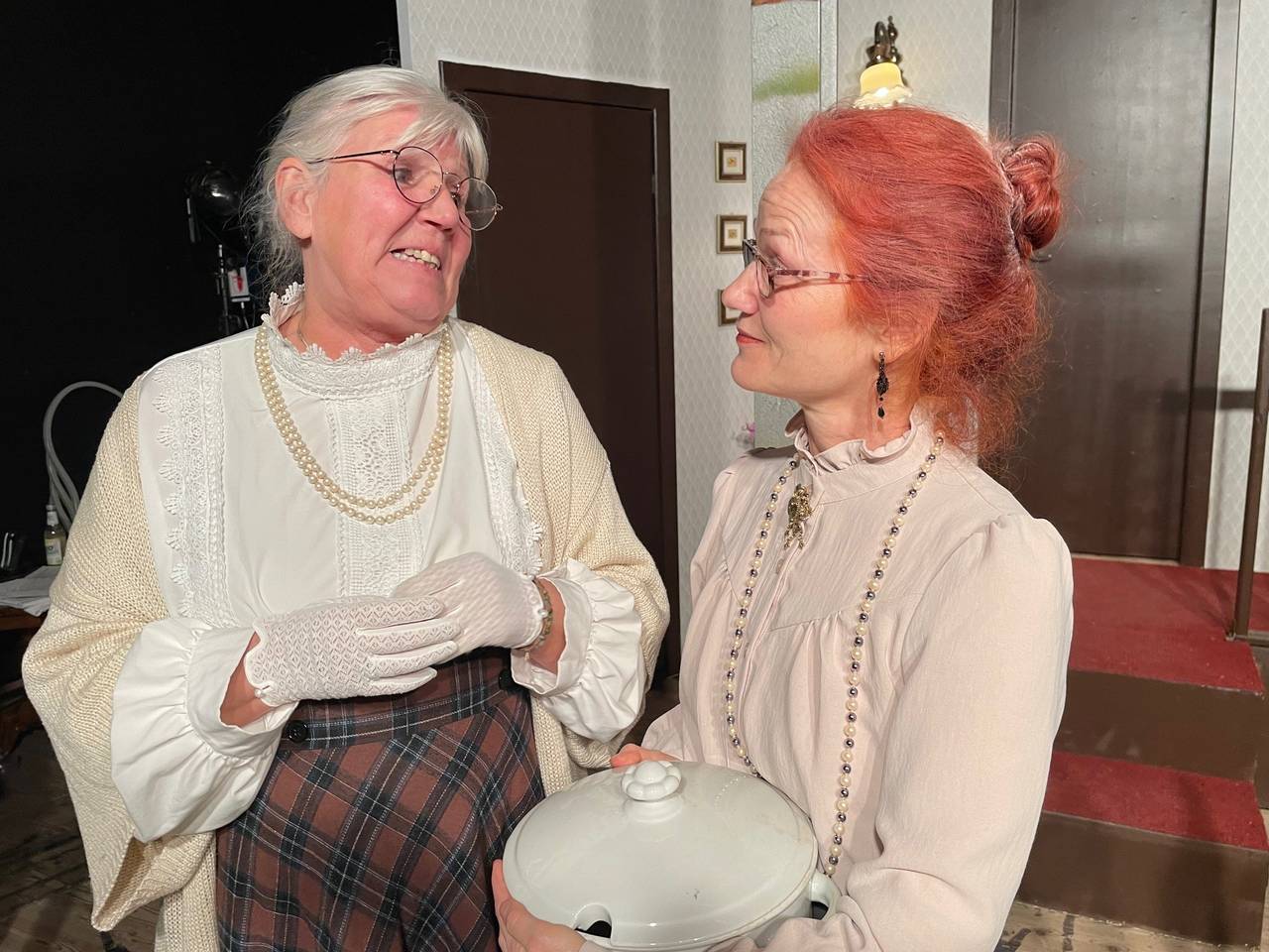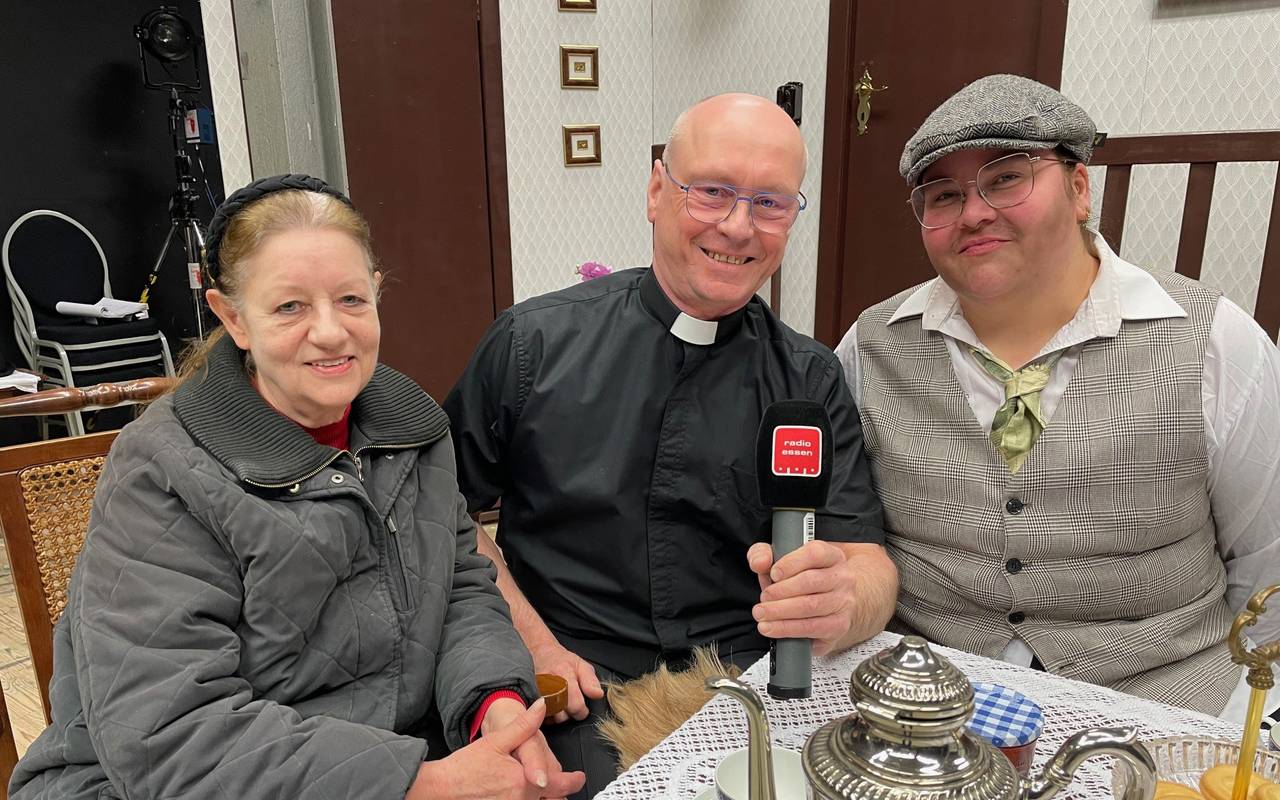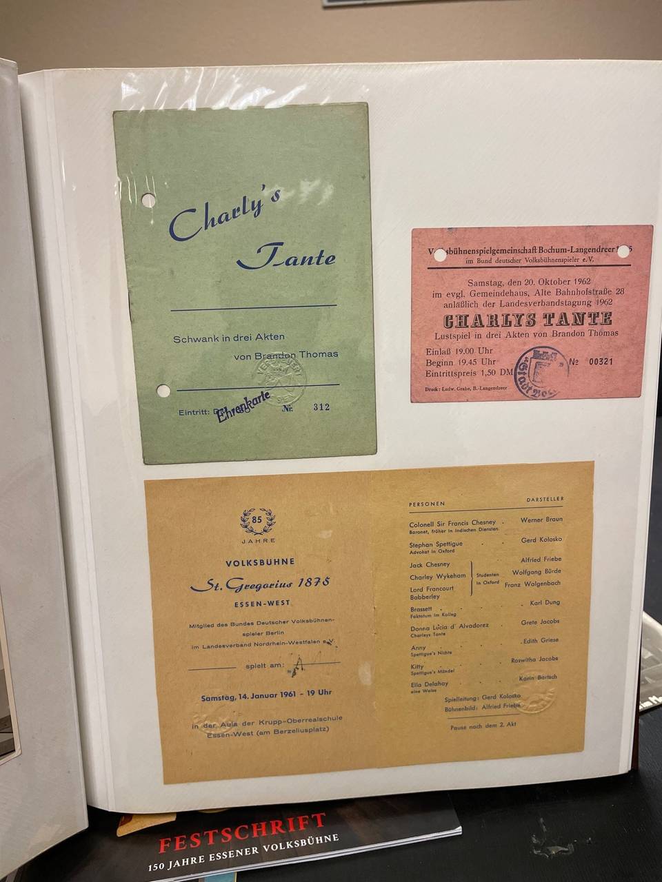 Radio Essen-Stadtreporter Timm Schröder platzt in eine der letzten Durchläufe von "Arsen und Spitzenhäubchen" auf der Probebühne in Burgaltendorf. Die Kulisse steht und nach einem kurzen Lichtcheck geht es auch schon los. Im Halbdunkeln gehen die Schauspieler auf ihren Platz. Alle arbeiten sehr konzentriert. Meike sitzt im Publikum mit einem karierten Block auf dem Knie. Sie macht sich Notizen, denn neben ihrer Rolle im Stück führt sie auch Regie. Die Texte sitzen und jeder weiß, wo er wann auftritt. Nur einmal lässt einer der Schauspieler beim Verlassen der Bühne aus Versehen seine Tasche an der Garderobe hängen. Ganz leise öffnet er kurze Zeit später die rechte Bühnentür und angelt sie vorsichtig wieder heraus. Für unser Interview nehmen wir Platz mitten in der Kulisse. Es ist das Wohnzimmer der Familie Brewster. Zusammen mit Meike, Ulli und Manni blättern wir in den alten Fotoalben der Volksbühne. Viele Unterlagen von der Gründung des "Wohltätigkeitsvereins Altendorf" vor 150 Jahren gibt es nicht mehr. Am Ende des zweiten Weltkriegs zerstörte ein Bombe des Vereins in der Unterdorfstraße die Gebäude. Ihre heutigen Probenräume in Burgaltendorf beziehen sie erst 1991. In den vergangenen Jahrzehnten ist viel passiert. In den Fotoalben fällt unser erster Blick auf einen bekannten Essener Schauspieler. Er war beim 100-jährigen Jubiläum des Vereins. Ulli erinnert sich.
