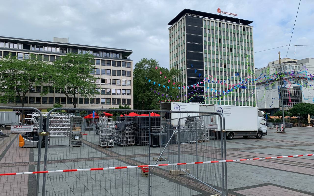 In Essen sind die Aufbauarbeiten für das Stadtfest Essen Original gestartet. So sieht es bisher in der in der Innenstadt aus.