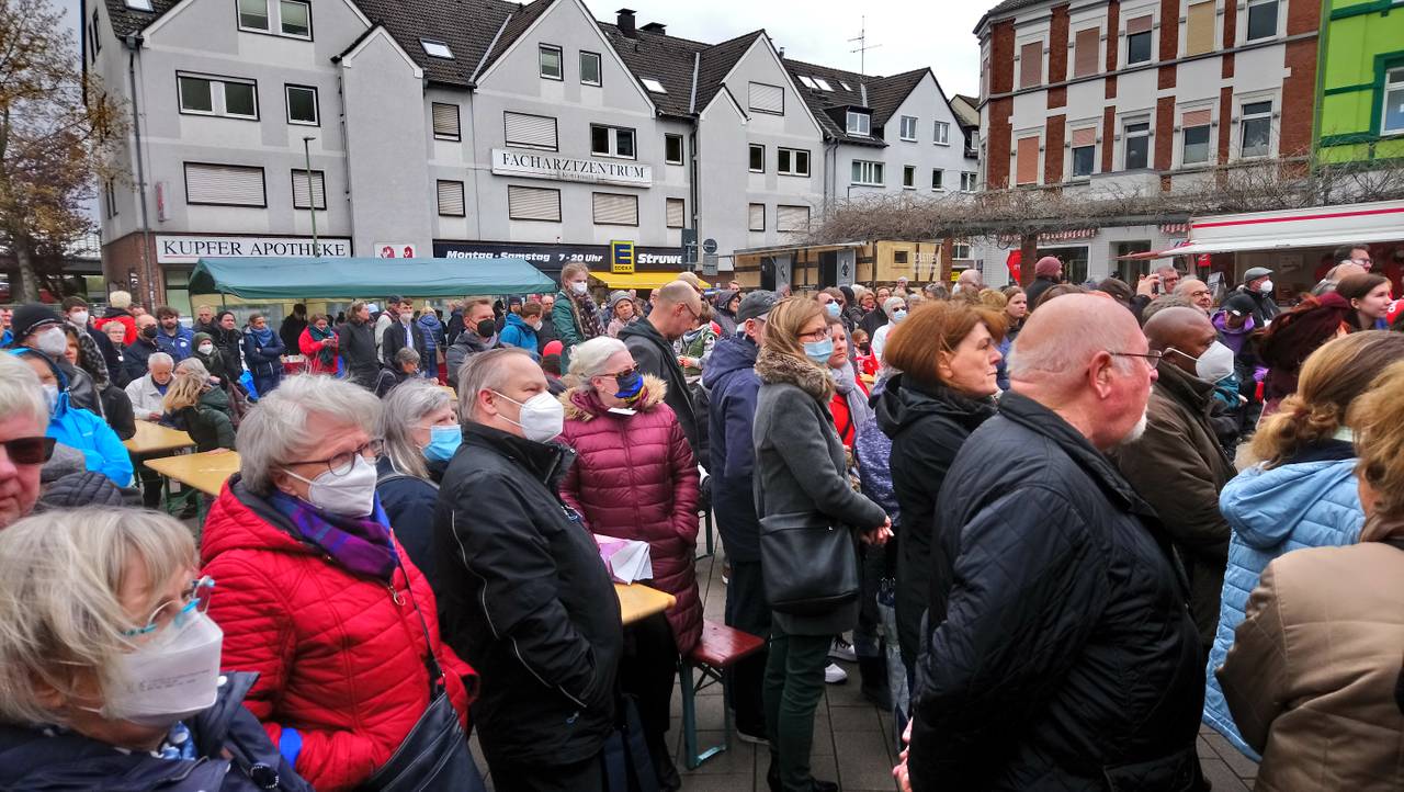 Lauterbach bedankte sich in seiner Rede bei allen, die sich an die Corona-Regeln halten und sich haben impfen lassen. Die Reaktionen der Zuschauer in Kupferdreh waren unterschiedlich: Einige haben Lauterbach ausgepfiffen, andere haben ihn gelobt und Selfies mit ihm gemacht.