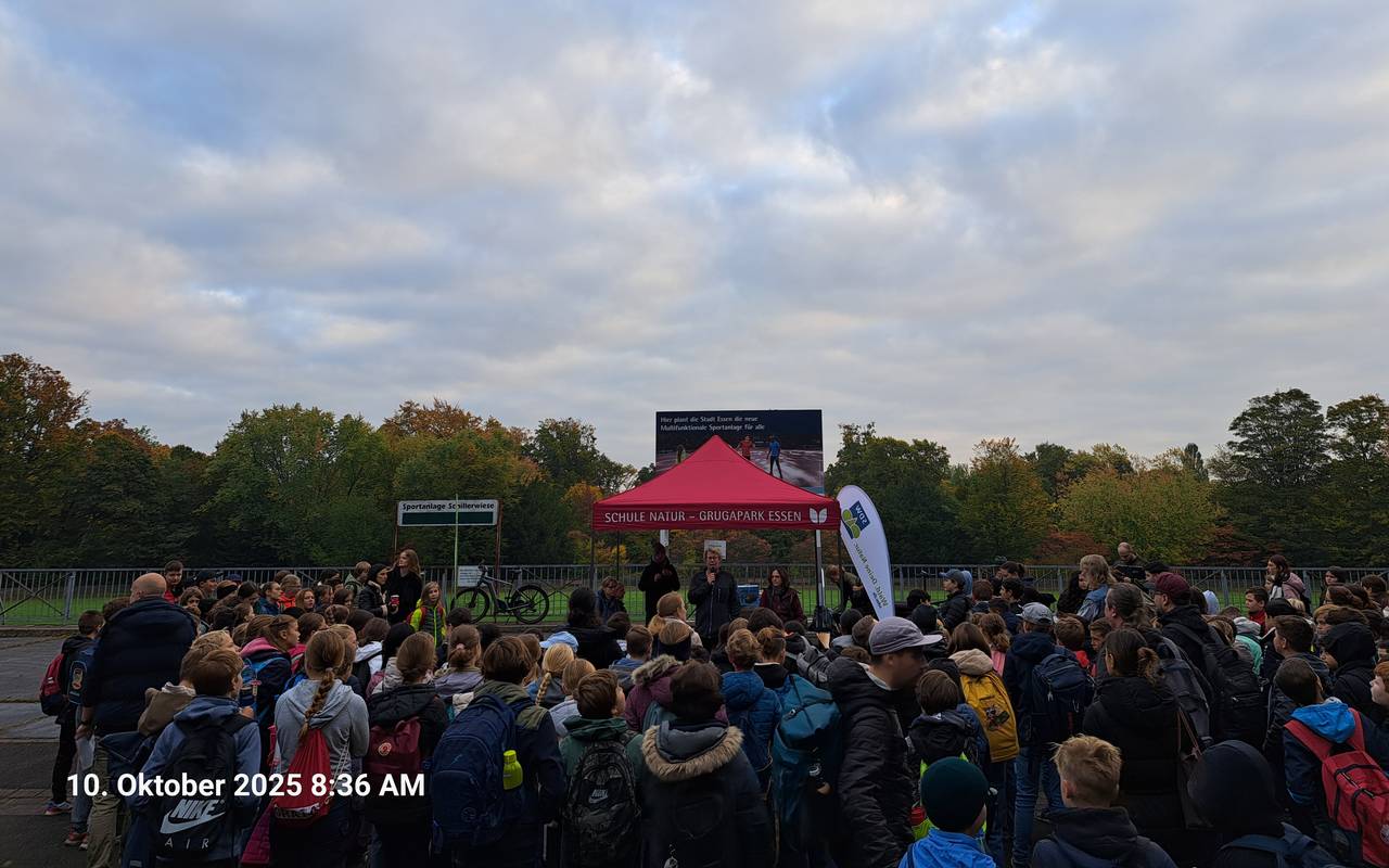 Viele Sechstklässler in Essen sind heute auf der Schillerwiese im Stadtwald unterwegs. Bei den 32. Waldjugendspielen sollen sie das Ökosystem Wald näher kennenlernen. Dafür ist im Stadtwald ein Parcours mit insgesamt zehn Stationen aufgebaut. Es gibt zum Beispiel eine Sägestation, bei der die Kinder von Baumstämmen kleine Holzscheiben (ca. 1 cm dick) mit einer Handsäge absägen müssen. Außerdem können sie spielerisch einen Waldbrand löschen, indem sie mit einem Wasserschlauch über ein Hindernis das Wasser in einen Eimer bringen müssen.