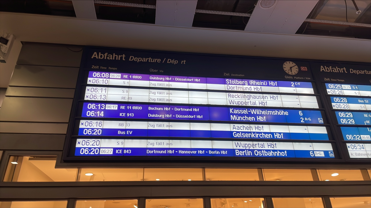 Bei uns in Essen waren viele Pendlerinnen und Pendler auf den Streik eingestellt - so der Eindruck unserer Radio Essen-Stadtreporterin. Entsprechend leer waren sowohl die Bahnhofshalle in der Innenstadt als auch die Bahnsteige. Immer wieder standen Menschen vor den großen Anzeigen in der Bahnhofshalle. Dort hatte die Deutsche Bahn Zugausfälle, Verspätungen und den Schienenersatzverkehr angeschlagen. Unsere Stadtreporterin hat auch mit einigen Reisenden gesprochen: Viele waren sehr genervt und frustriert von dem Streik. Diejenigen, die keine andere Wahl hatten als mit der Bahn zu fahren, brauchten lange.