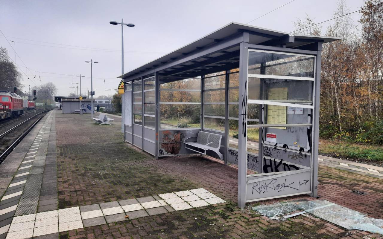 An einem Bahnhof in Essen ist am Dienstag (21. November) ein Wartehäuschen zerstört worden. Die Polizei sucht nach Zeugen.