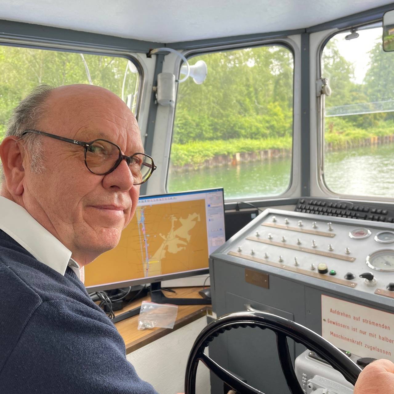 Udo Gödje ist Binnenschiffer mit Leib und Seele. Sein ganzes Berufsleben stand er auf der Brücke. Erst hat er 15 Jahre zum Beispiel Kohle transportiert und dann ist er vor über 30 Jahren zur Weissen Flotte gewechselt. Für ihn ein Vorteil. Im Radio Essen Interview sagt er: Fahrgäste stauben nicht. Nicht nur seine Kollegen werden den Baldeney-Seebären vermissen. Auch die Fahrgäste. Bei der Weissen Flotte hat er viel erlebt. Mit Angela Merkel stand er am Ruder und mehrmals ist er sogar mit der MS Baldeney bis nach Berlin getuckert.