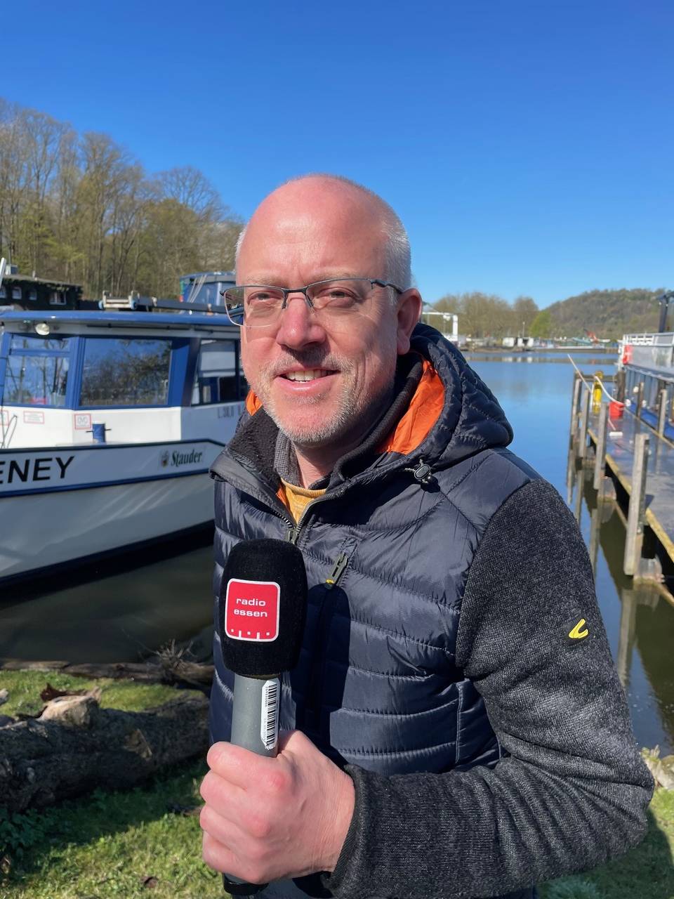 Radio Essen-Stadtreporter Timm Schröder trifft Michael, Jacob und Stefan. Die drei und ihre Kollegen haben alle Hände voll zu tun. Bis zum Saisonstart am 12. April schleifen sie zum Beispiel noch an einigen Stellen den Rost an der Außenwand der "Heisingen" ab. So heißt eines der Schiffe der Weißen Flotte. Danach lackieren sie wieder mit weißer Farbe. Michael zeigt unserem Reporter wieviel Arbeit das ist. Parallel schrubbt Jacob die "Kettwig" mit einem Spezial-Shampoo. Bis Samstag soll das letzte, ausschließlich mit einem Dieselmotor fahrende, Schiff wieder glänzen. Alle anderen Schiffe fahren elektrisch. Dicke schwarze und orangene Kabel laden die Akkus auf und versorgen die Kühlschränke im Bord-Bistro. Hier kümmert sich Stefan darum, dass die Gäste nicht auf dem Trockenen sitzen müssen. In der Schublade mit den kalten Getränken entdeckt unser Radio Essen-Stadtreporter dann auch ein besonderes Tröpfchen. Es wird klar. Hier ist noch einiges zu tun.