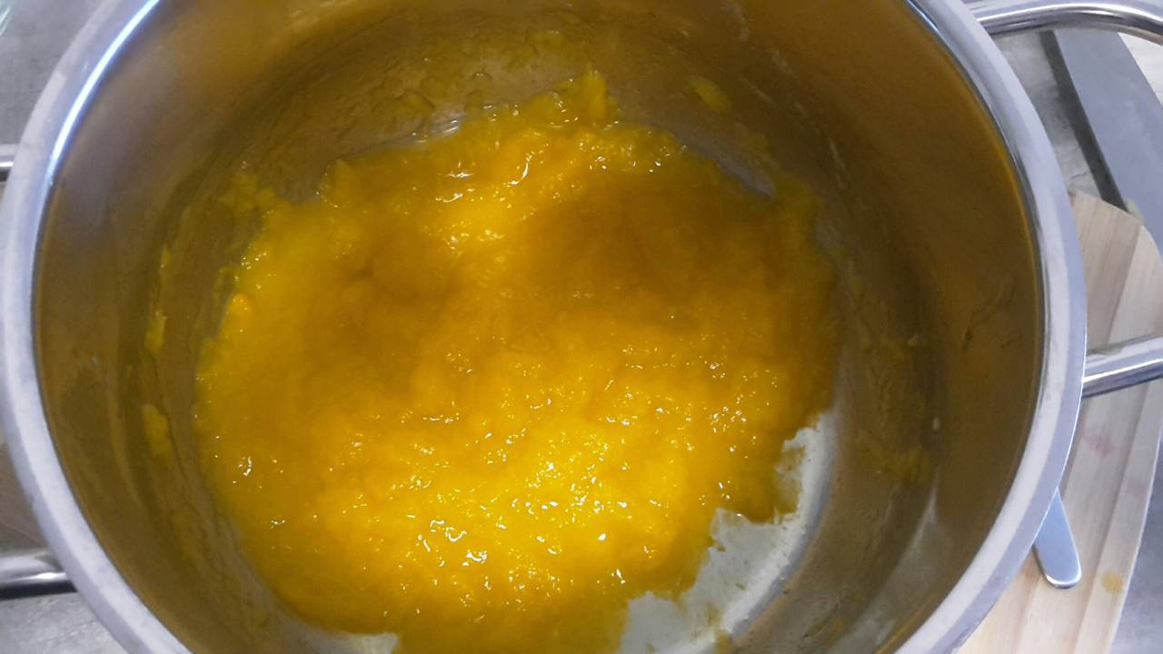 - Schritt 1: Den Kürbis in Scheiben schneiden und kochen, dann stampfen oder pürieren.
