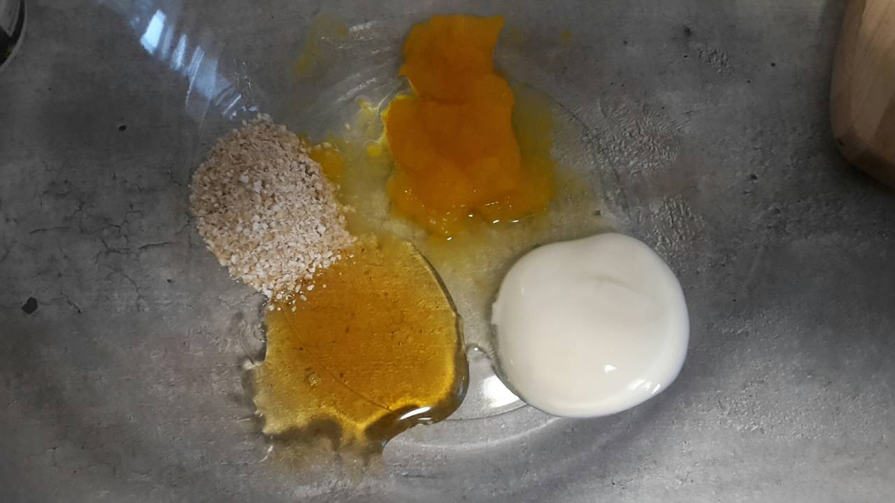 - Schritt 2: Wenn Kürbis schön weich und püriert ist, mit dem Honig, Joghurt und der Haferkleie vermischen. Das Ganze muss ein Brei werden, falls es zu flüssig ist, ruhig noch etwas mehr Haferkleie dazu tun.